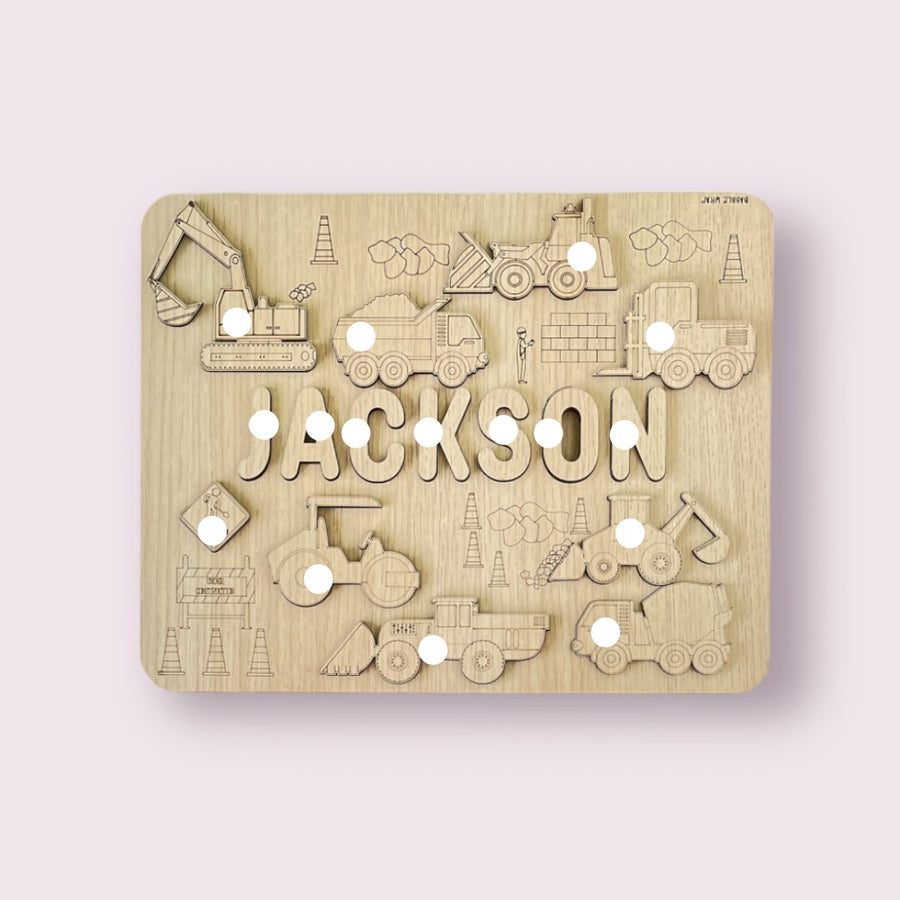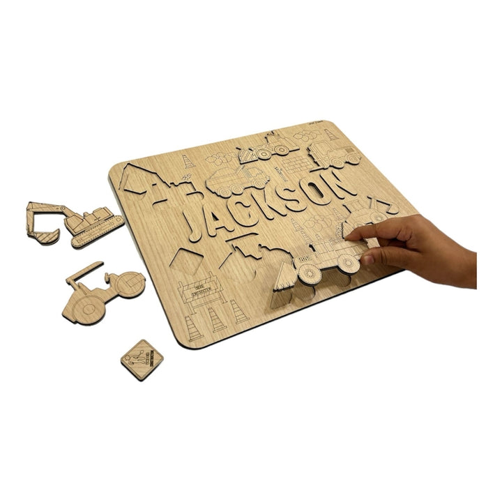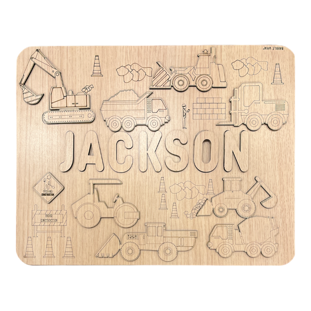 Personalised Wooden Name Puzzle- Construction Site