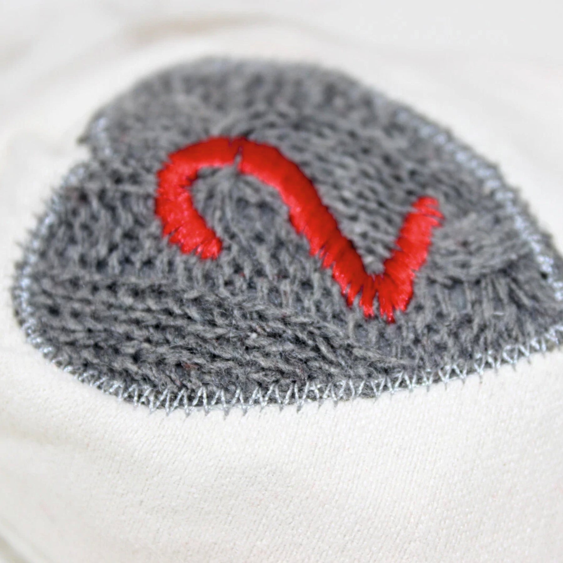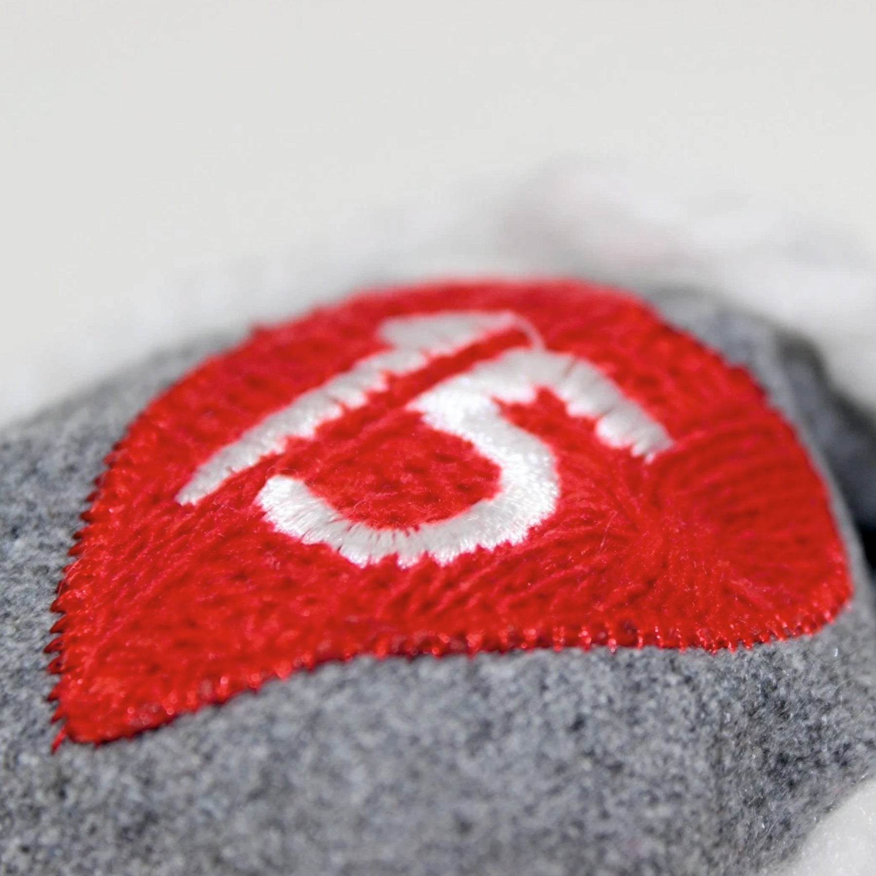 Includes 24 felt pouches in red, white, and grey with embroidered numbers