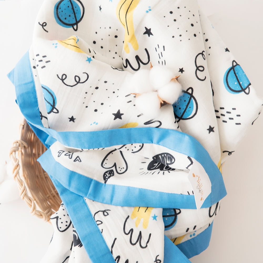 Designed with modern mommas in mind, our range of premium reversible oh-so-soft muslin blankets are a multipurpose piece that is sure to be loved and treasured during your child's first years. Yellow Doodle Muslin Blankets are the next best thing to momma’s warm embrace. Three layers of 100% premium organic cotton muslin sewn together to bring the utmost softness and breathability to your baby’s blanket. Perfect for snuggle, giggle and dream-time at home or when traveling. SIZE & MAKE- Three layers of 100% Organic Cotton Muslin, Reversible with a print at back, generously sized at 110 x 110 cm, Hypoallergenic, environment- friendly AZO free dyes. Handmade with care in India. CARE- Our super soft muslin blankets actually get softer as you wash them! Gentle cycle, use mild detergents, no bleach, tumble dry low.