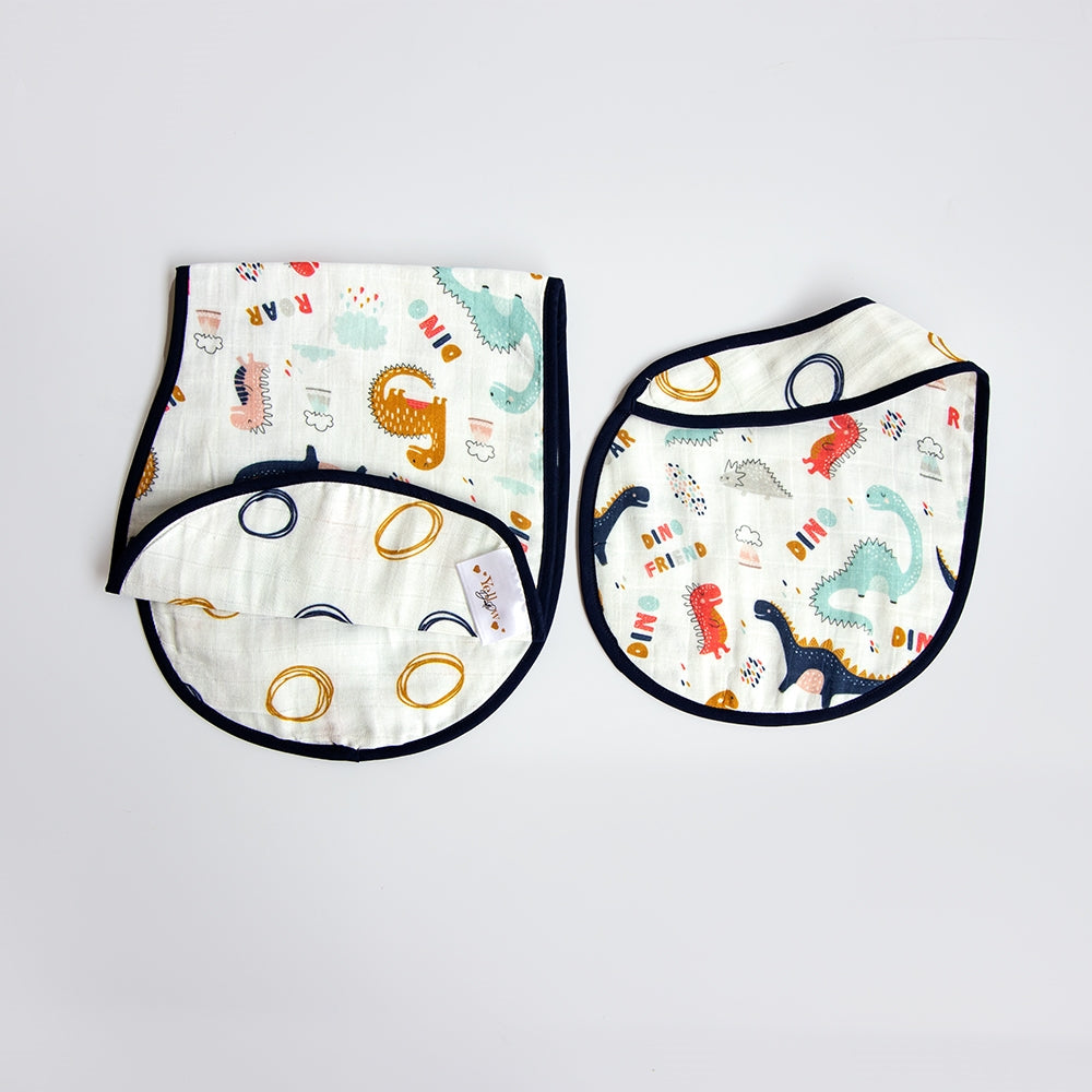 Dino Friend - Reversible Bib & Burpy Cloth Set