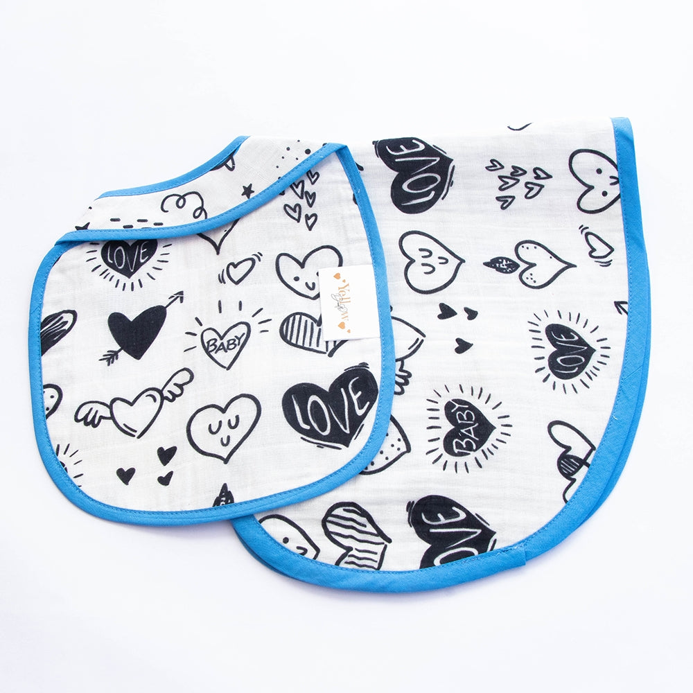 Doodle Hearts - Reversible Bib & Burpy Cloth Set