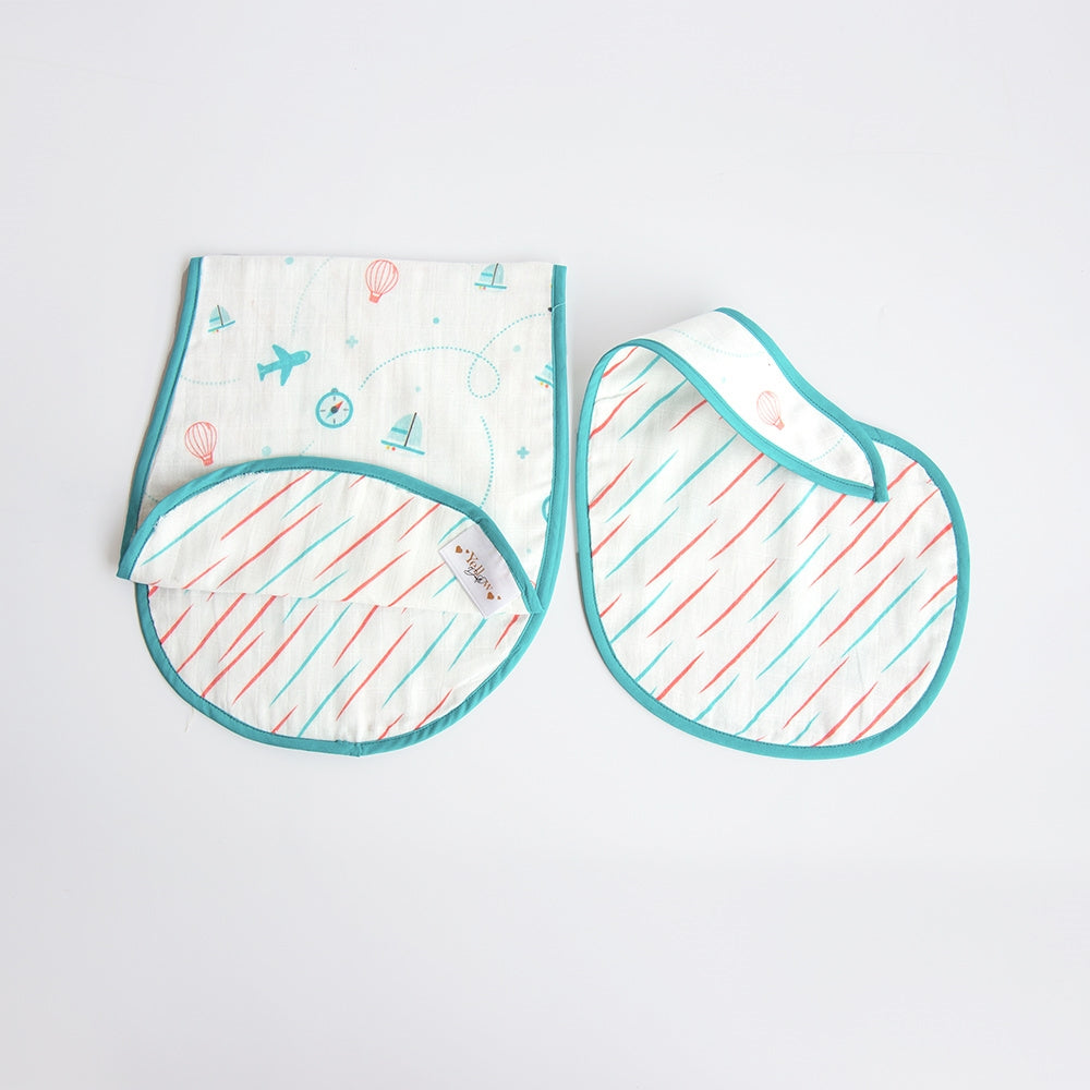 Lil Travellers - Reversible Bib & Burpy Cloth Set