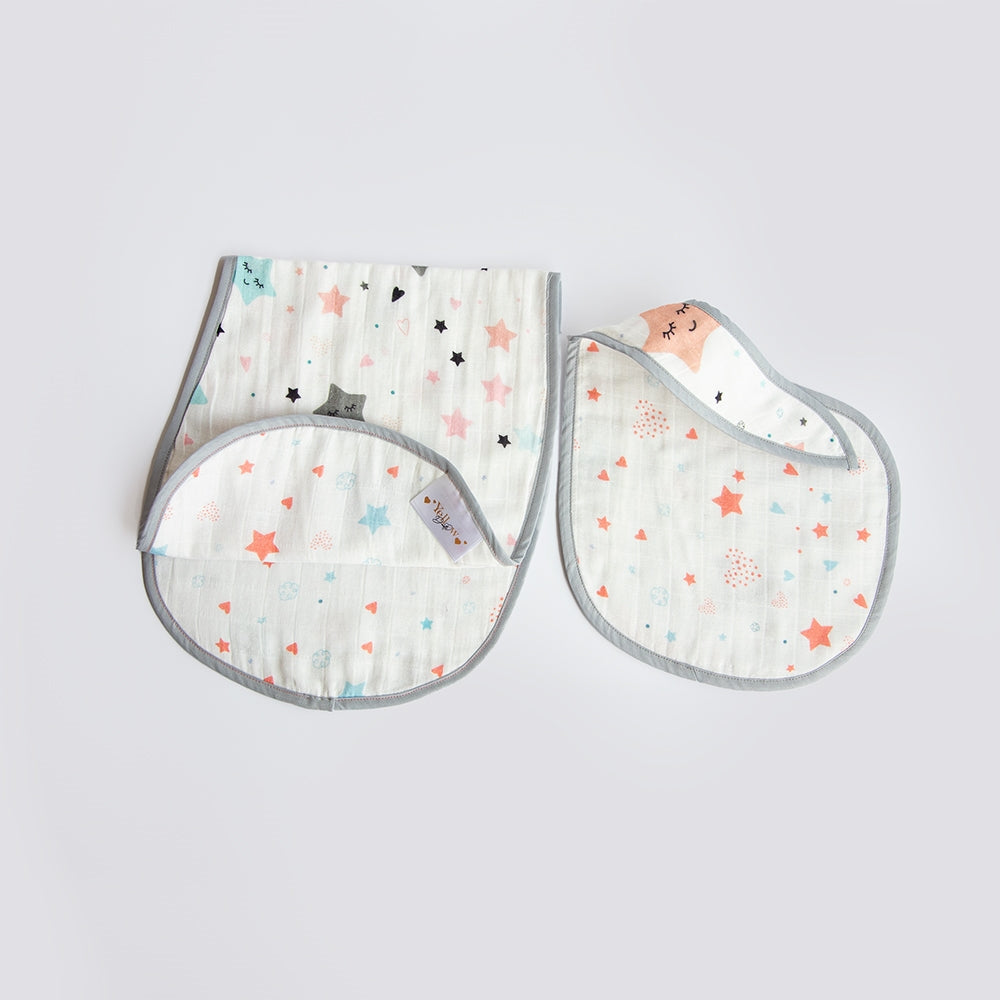 Twinkly Stars - Reversible Bib & Burpy Cloth Set