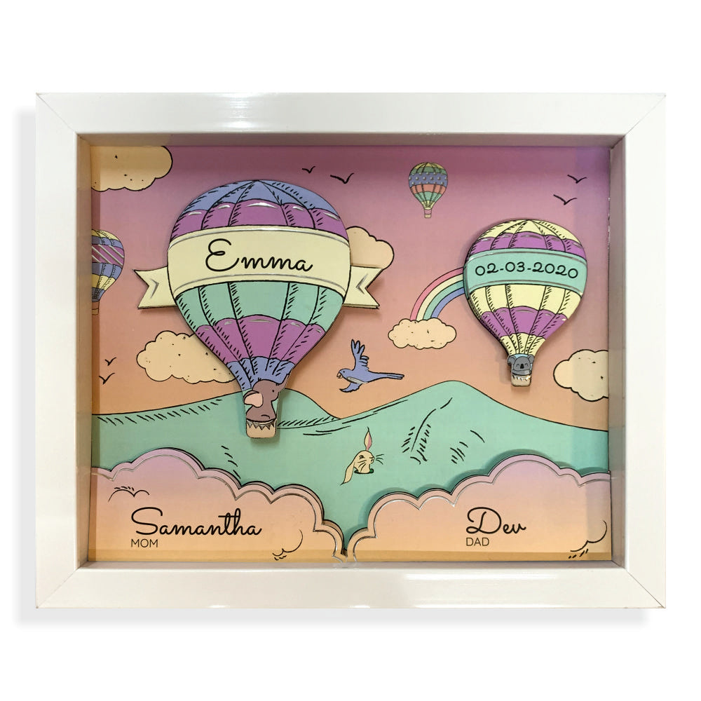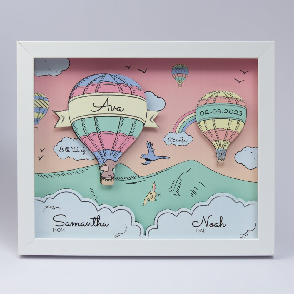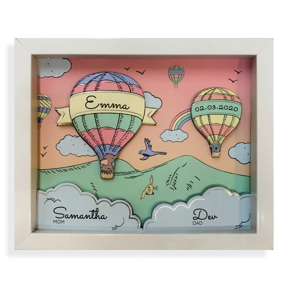 Shadow Box Frame with Silver Foil - Coral Hot Air Balloon