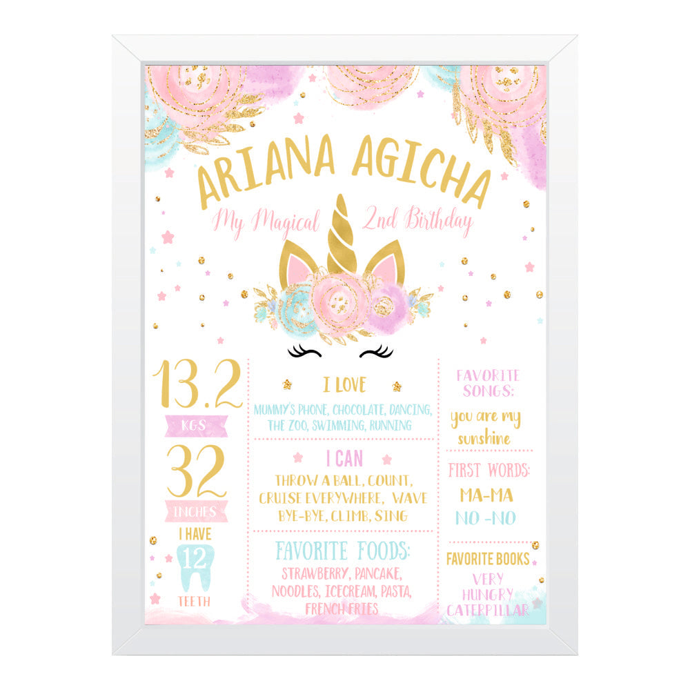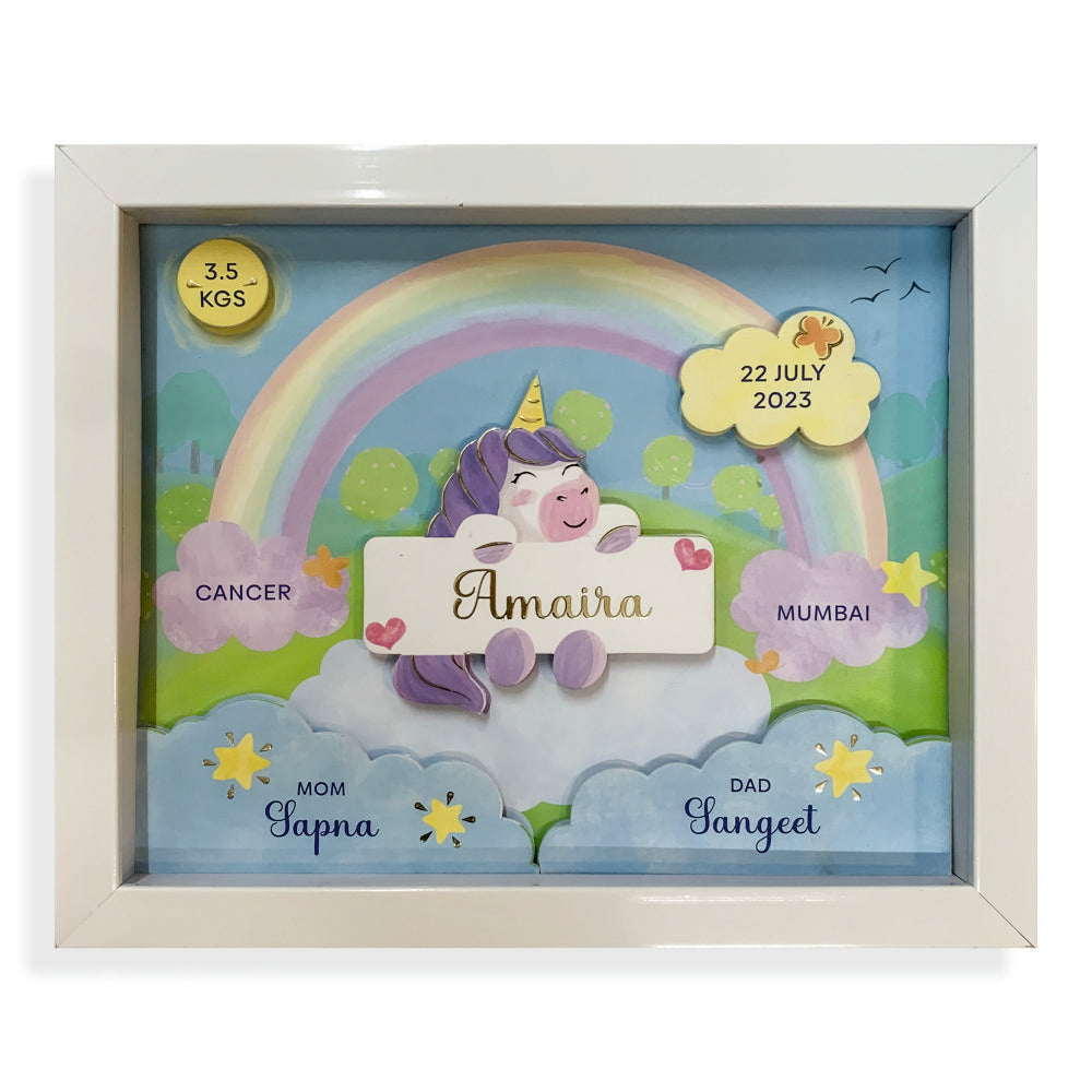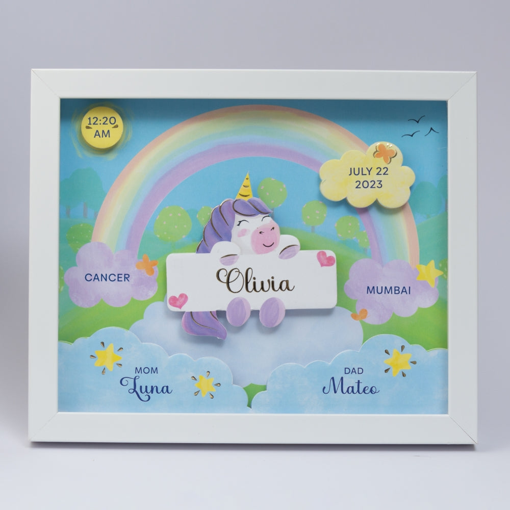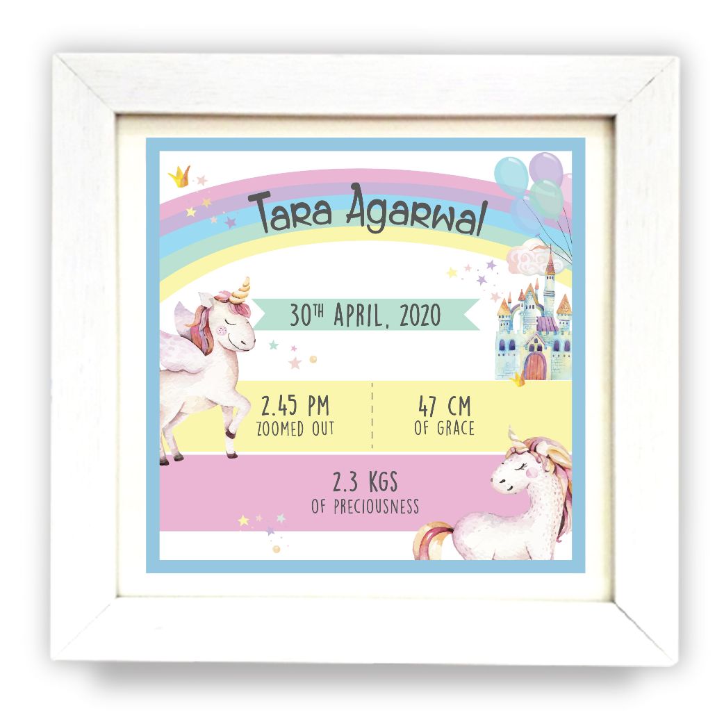 Doodle's Birth Statistics Frame - Unicorn Dreams