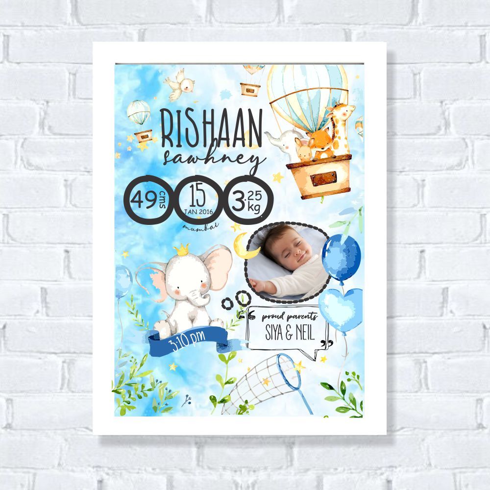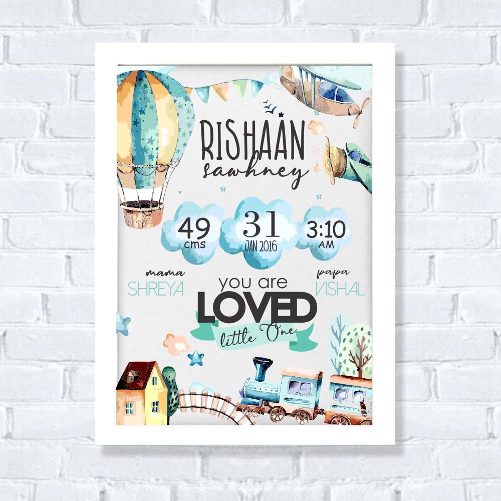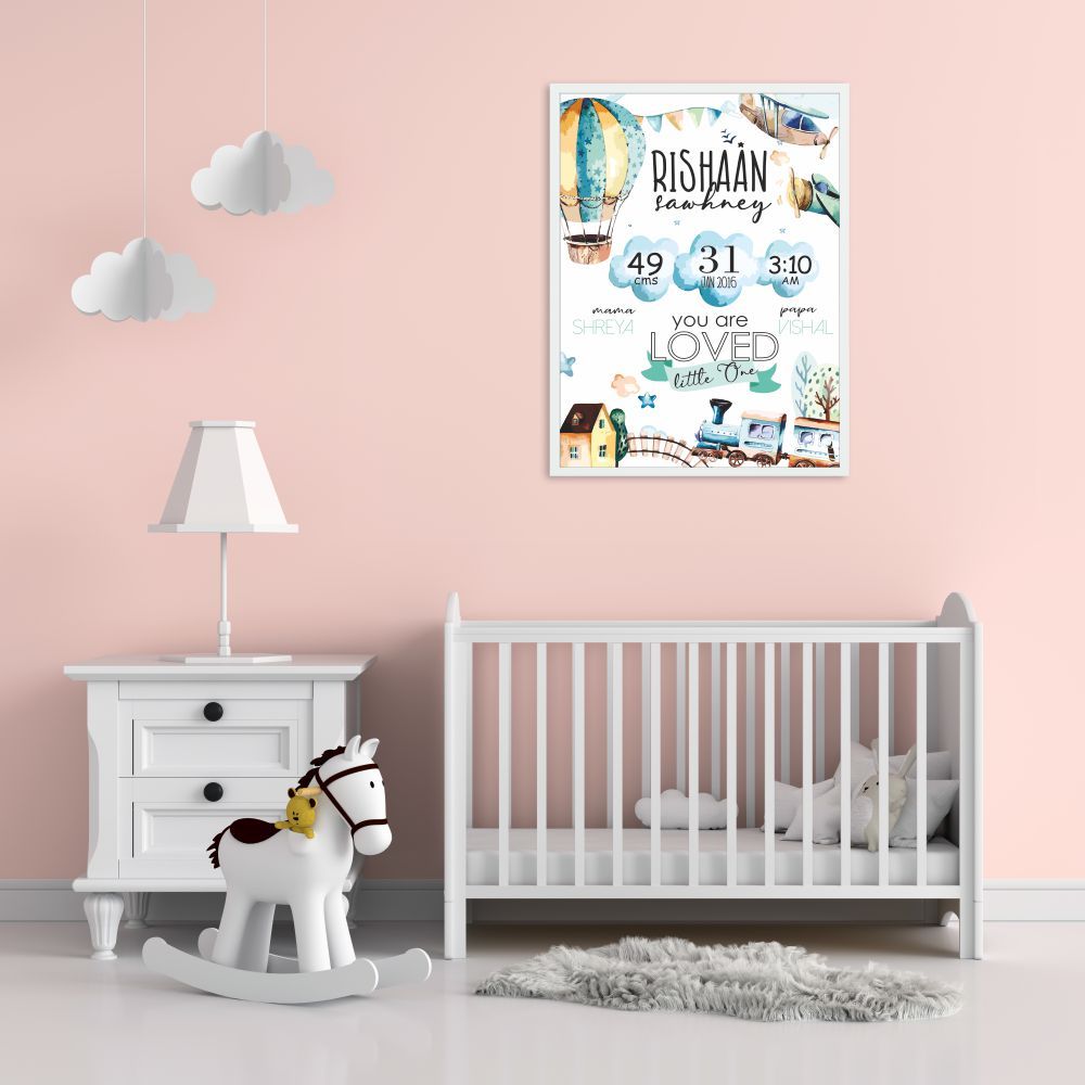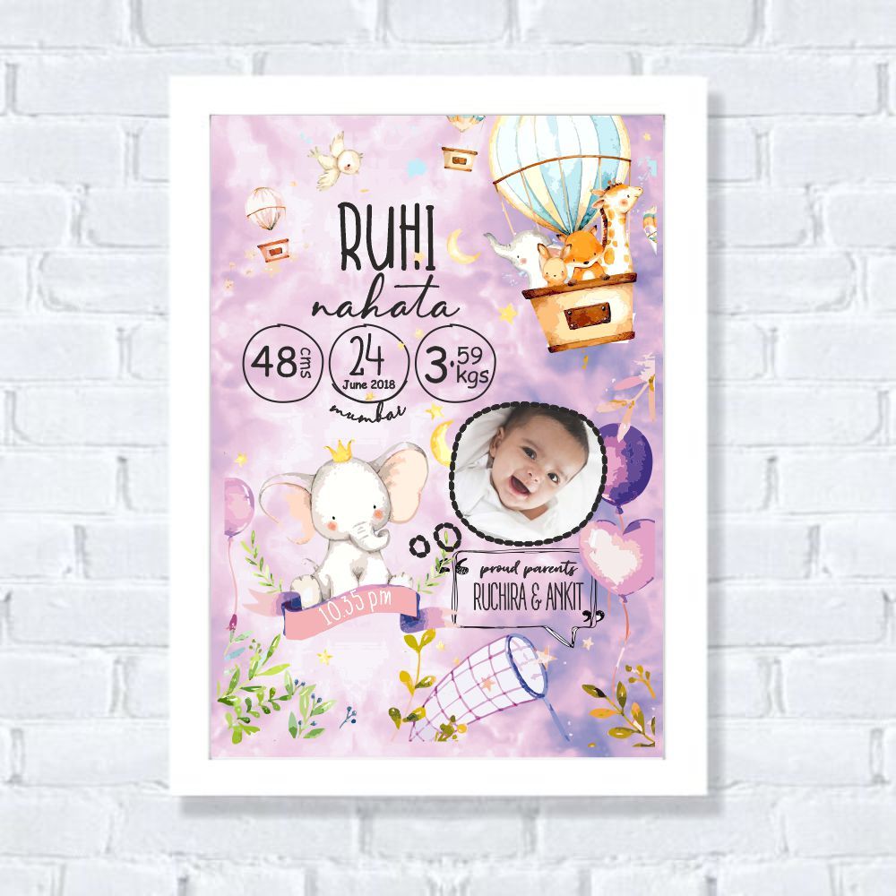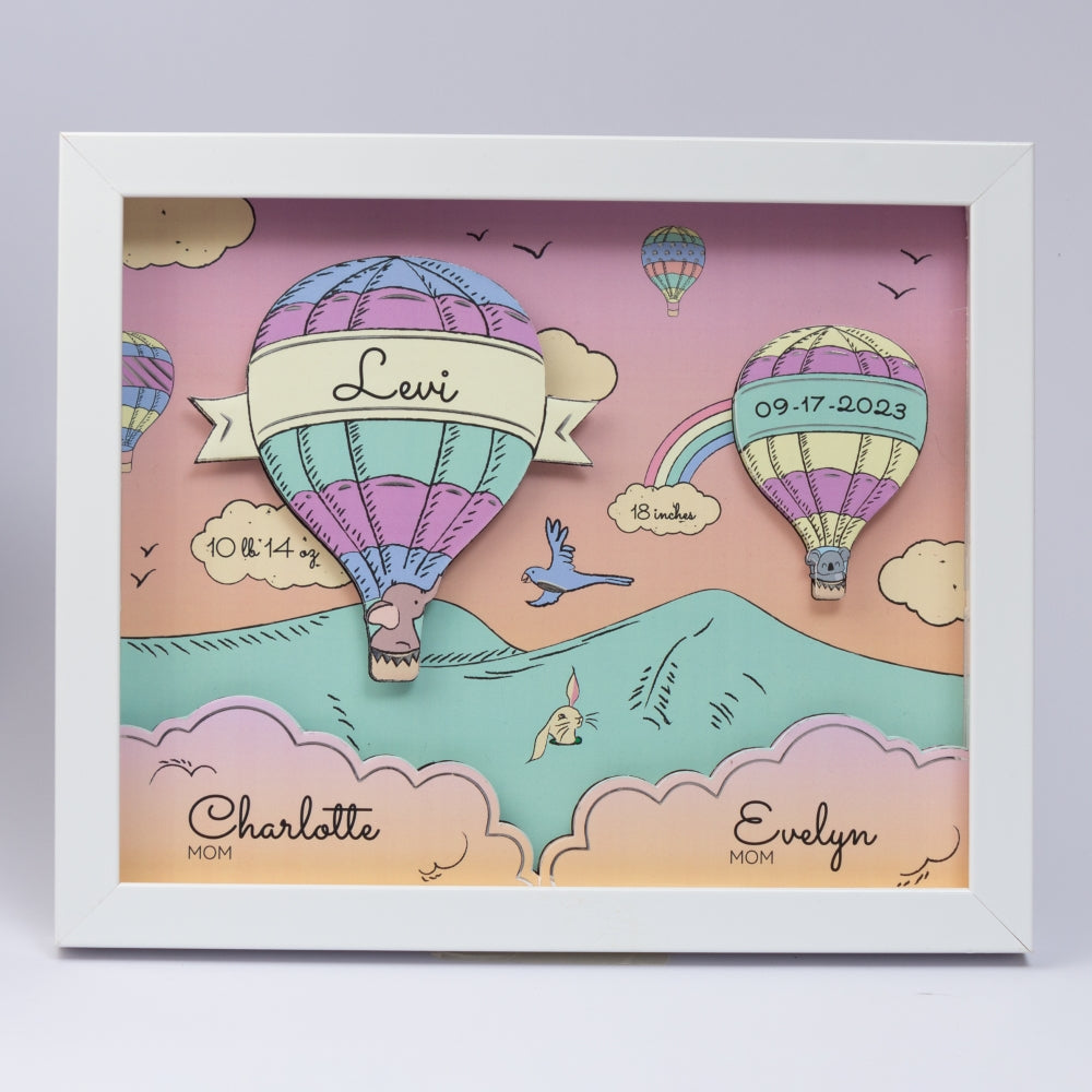 Birth Statistics Frame - Hot Air Balloon Lavender