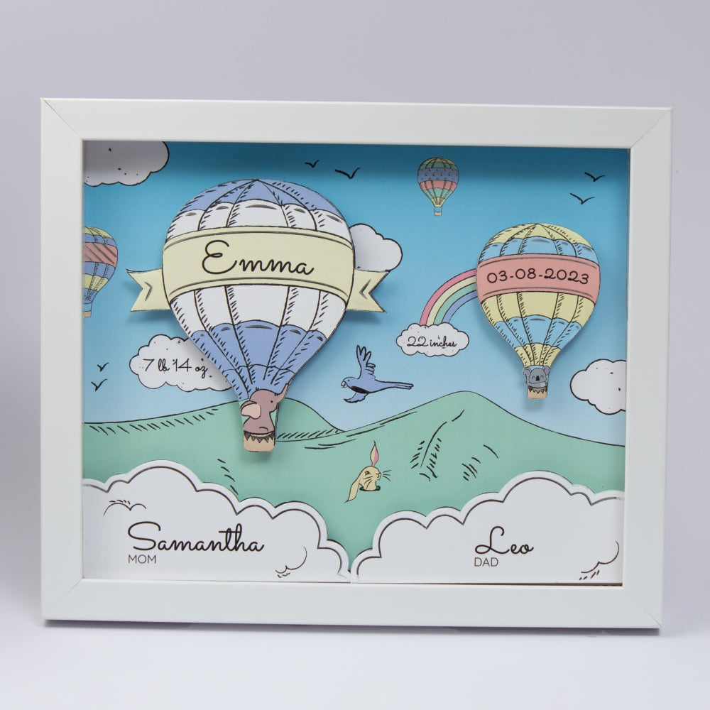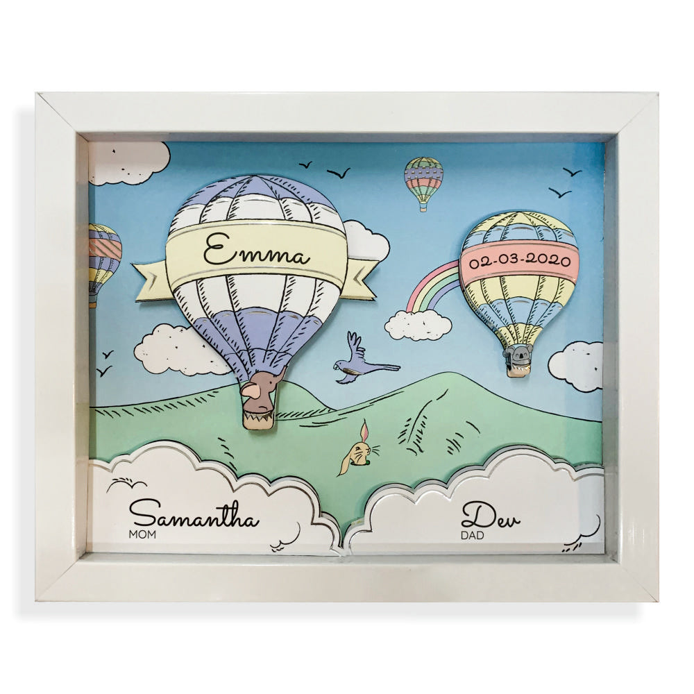 Shadow Box Frame with Silver Foil - Blue Hot Air Balloon