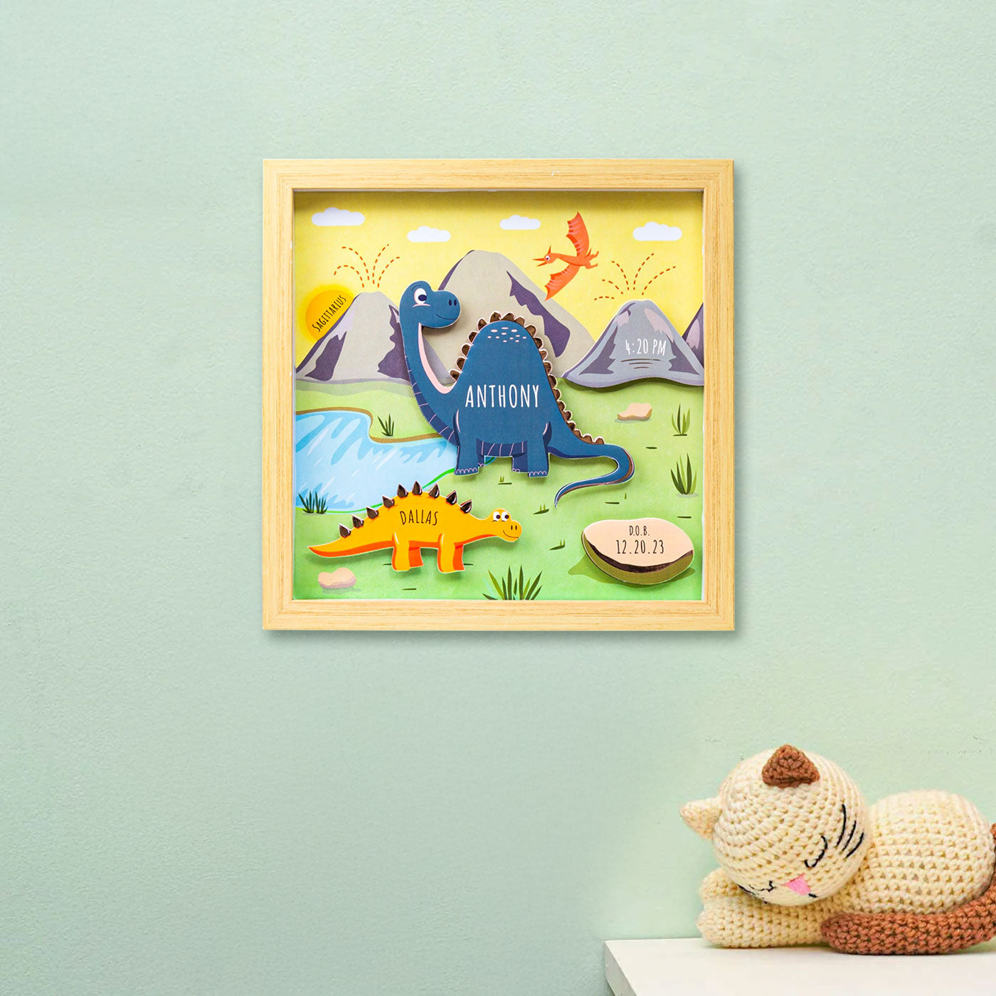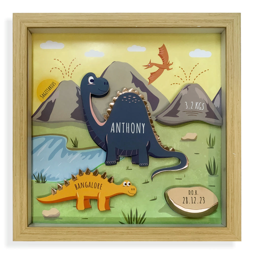 Shadow Box Frame with Rose Gold Foil - Dinosaurs