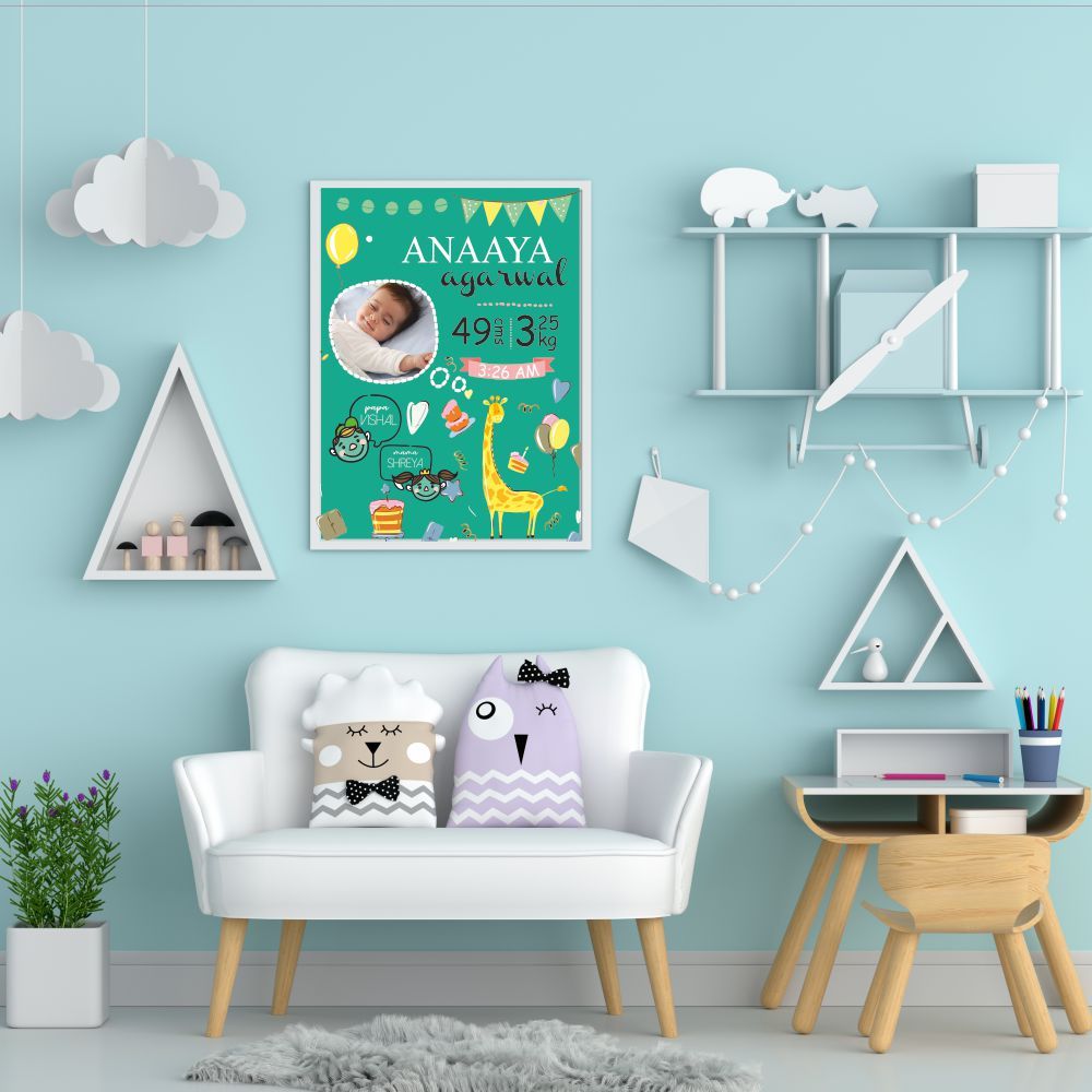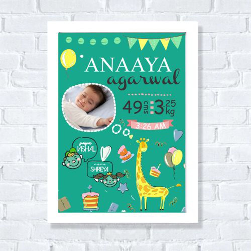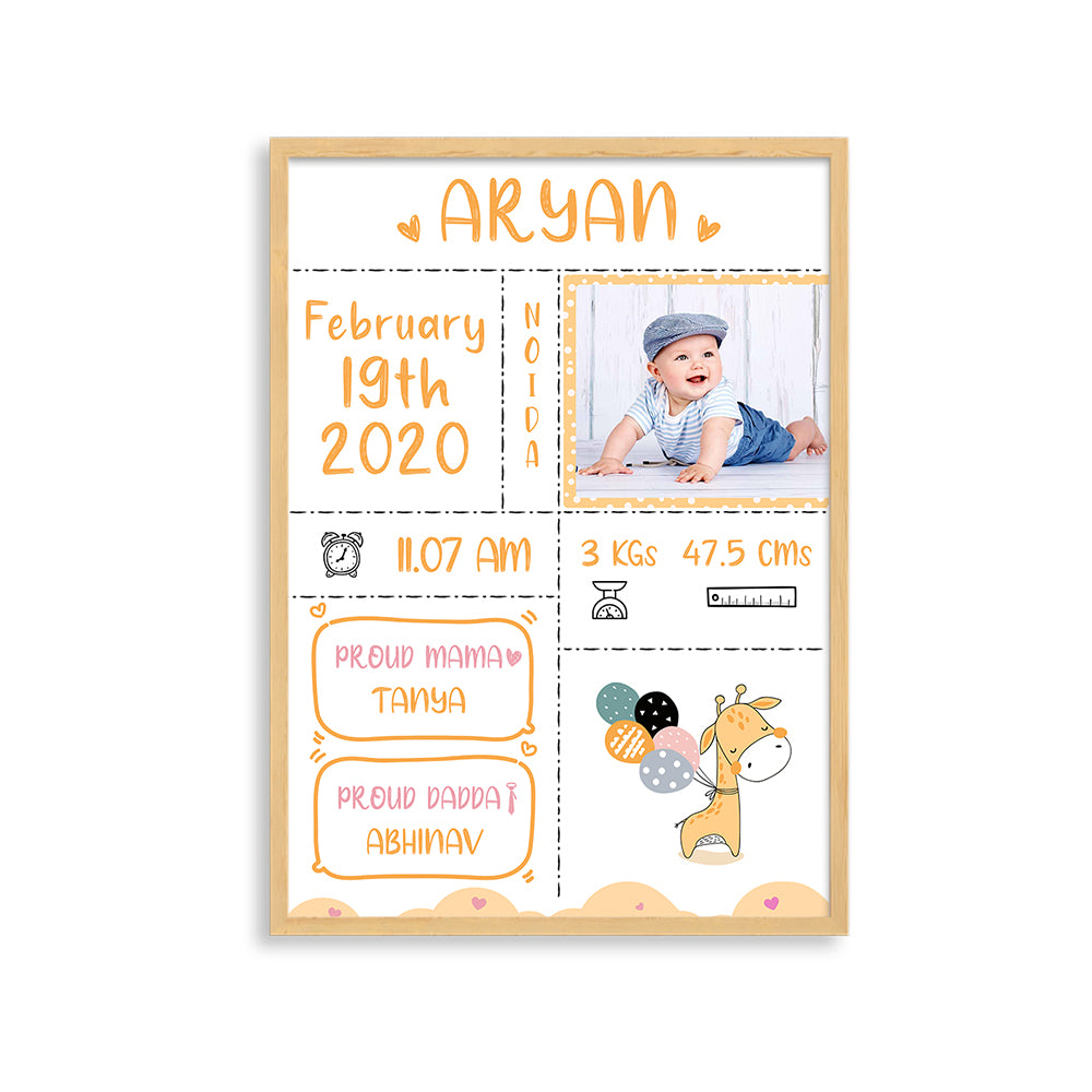 Doodle's Birth Statistics Frame - Baby Giraffe