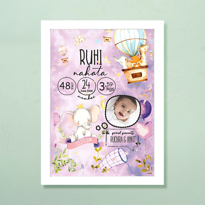 Celebrate the arrival of your baby with this adorable birth statistics frame!