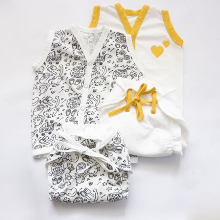 Yellow Doodle Baby Vests (Jhablas) are ethically made using the finest organic cotton and are printed with chemical free dyes, a safer choice for our environment and for your baby. Our cotton is luxuriously soft, and our doodle prints are fun & whimsical, not only keeping your little one snug and cozy, but also looking adorable. Gentle on your little one’s skin and super easy and cozy to wear so that your baby can explore the world around them with utmost comfort! MAKE- 100% premium organic cotton,Lead & Nickel free (coloured) poppers, Hypoallergenic, environment- friendly AZO free dyes. Handmade with care in India. CARE- Machine-washable, of course!Gentle cycle, use mild detergents, do not bleach, tumble dry low, Iron on lowest setting as needed.