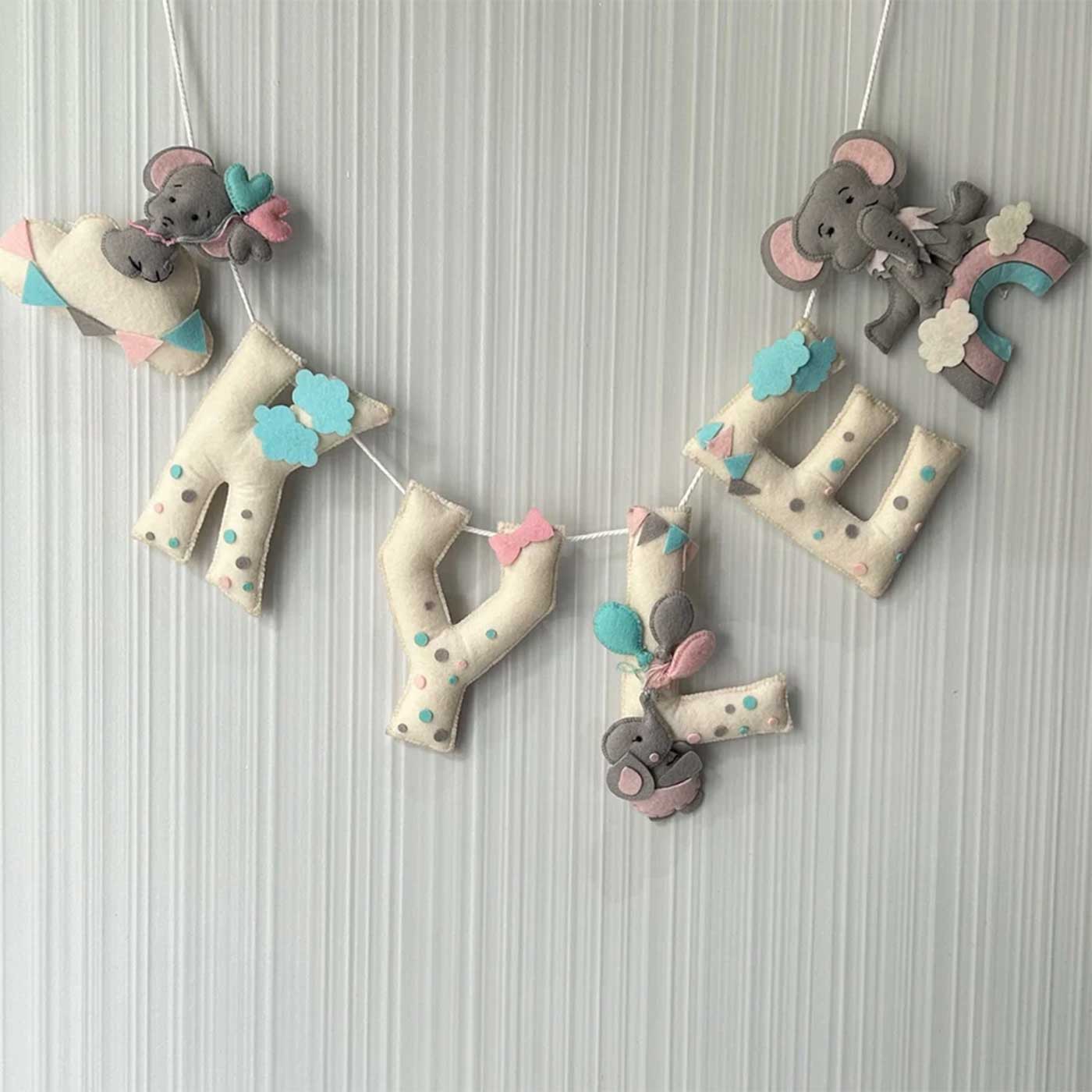 Babble Wrap Elephant Rainbow Name Bunting/Garland