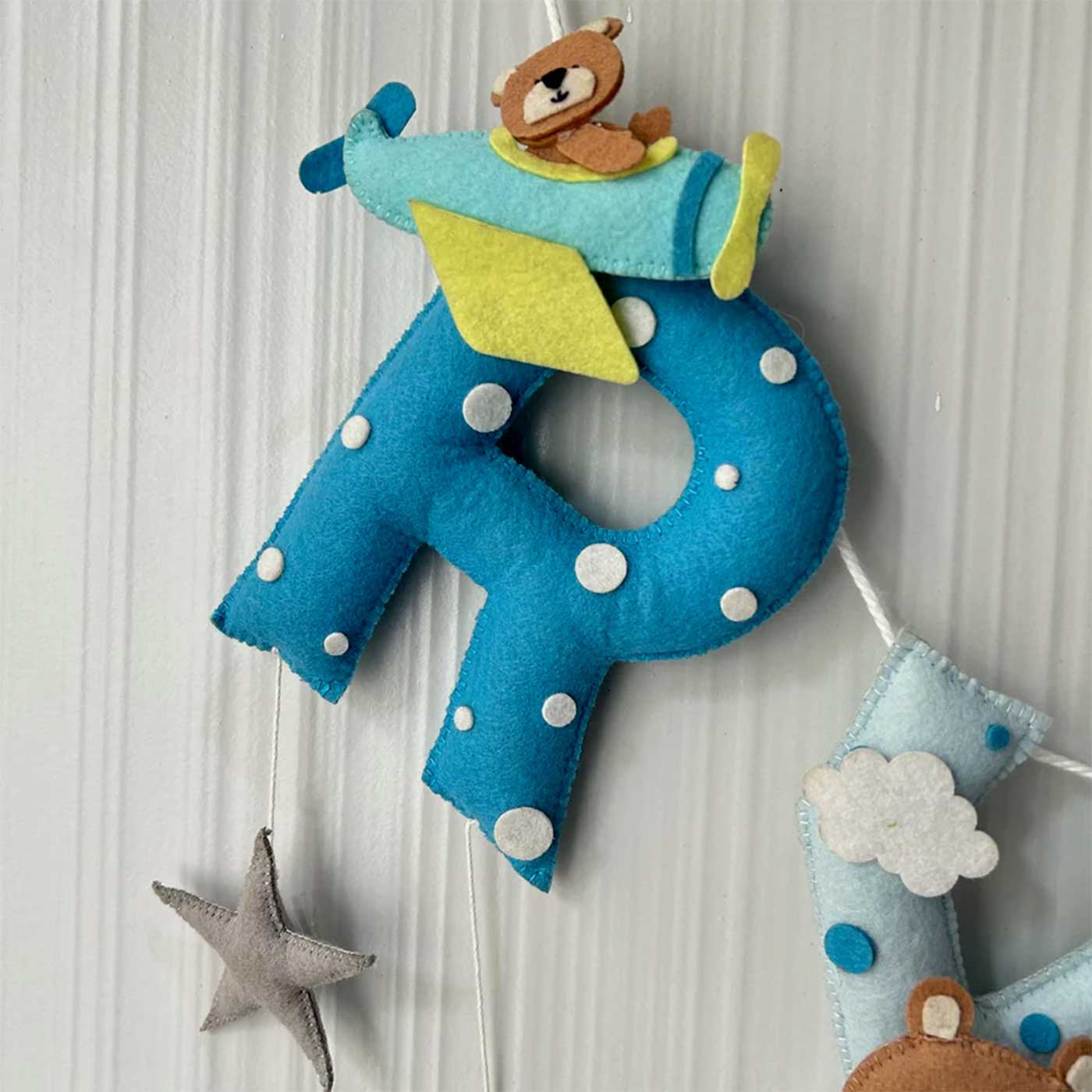 Babble Wrap Teddy on a Plane Name Bunting Garland