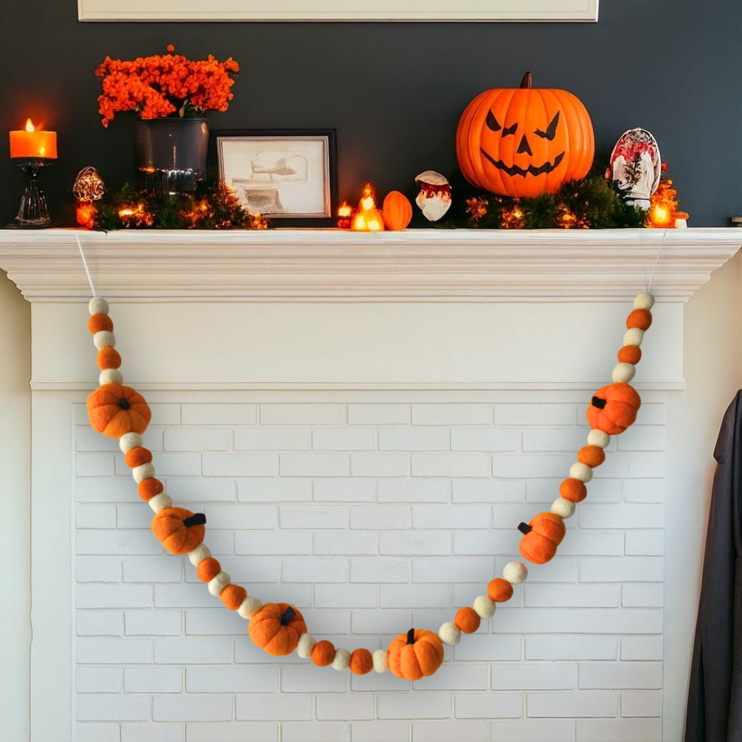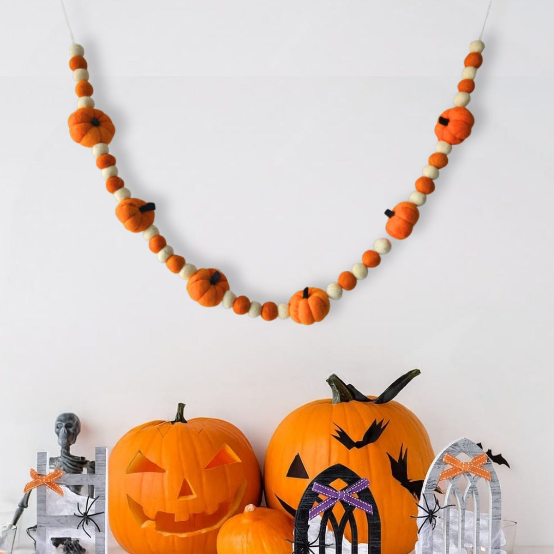 Pumpkin Pompom Bunting – Autumn Glow
