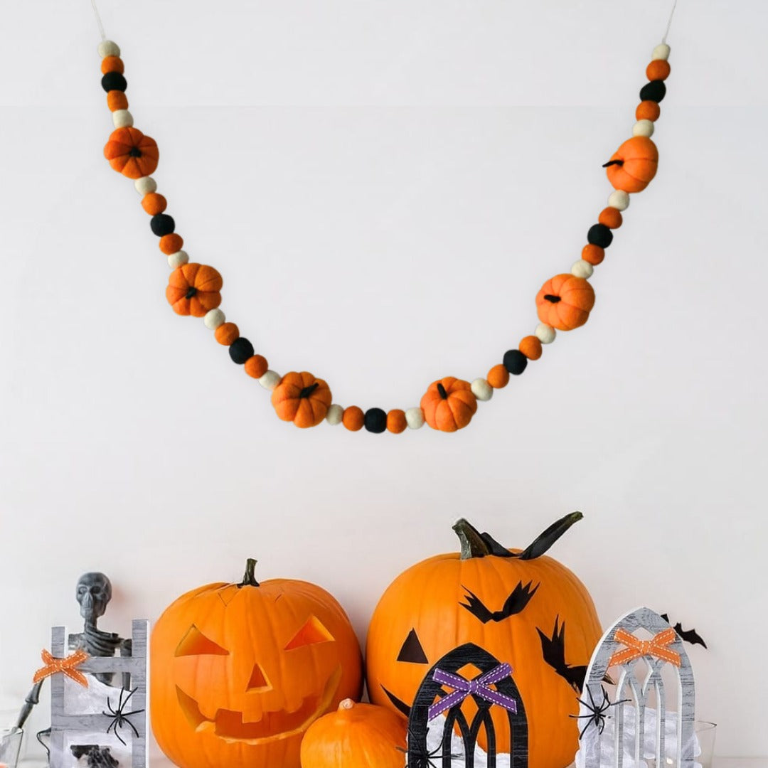 Pumpkin Pompom Bunting – Spooky Nightfall