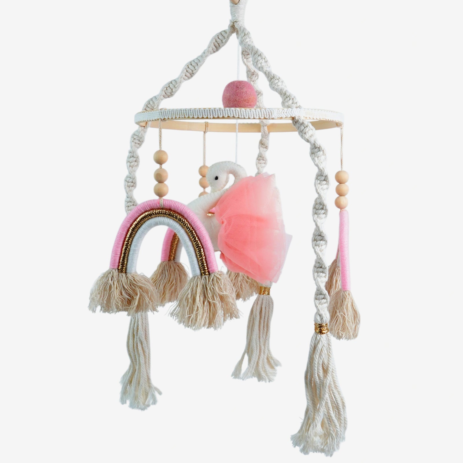 Babble Wrap Cot / Crib Mobile - Rainbow Macrame (Pink)
