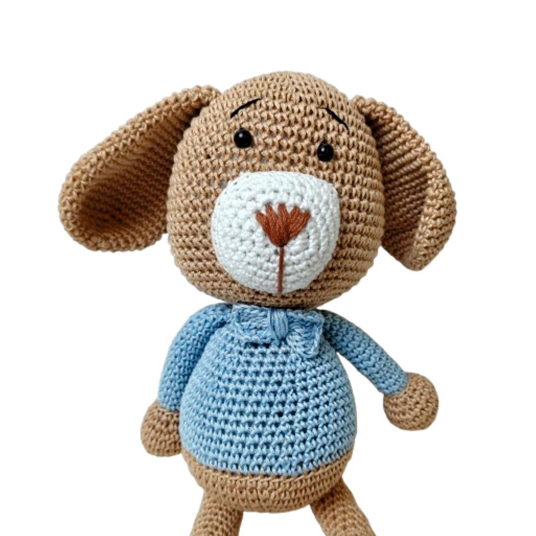Coco Paw is a lovable handmade crochet pup, dressed in a soft blue sweater with a tiny bowtie. With his floppy ears, stitched smile, and cuddly design, Coco Paw is always ready for hugs, play, and endless adventures. Carefully crafted with love and attention to detail, he’s more than just a toy — he’s a loyal companion and keepsake for little ones.
