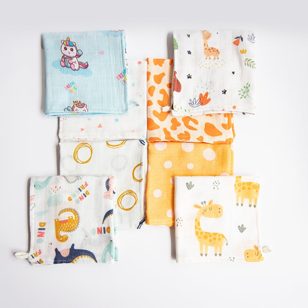 Baby Animals- Organic Muslin Wipes (Set Of 8)