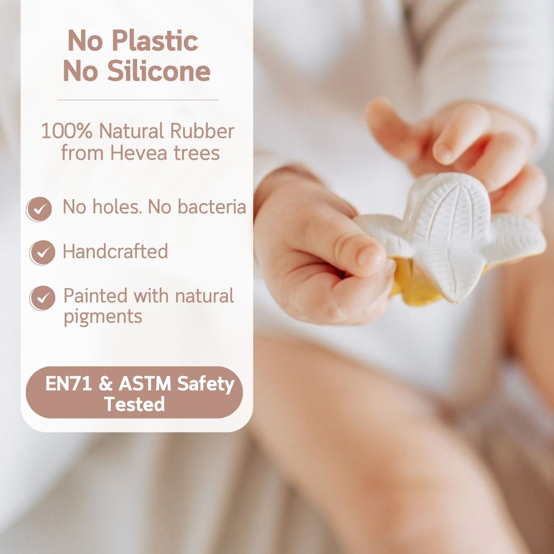This Chewy-to-Go baby teether helps the natural development of babies’ mouths while stimulating their senses. Each chewing toy is handmade one by one with 100% natural rubber and hand painted with natural pigments from plants. The perfect sustainable gift for babies!
