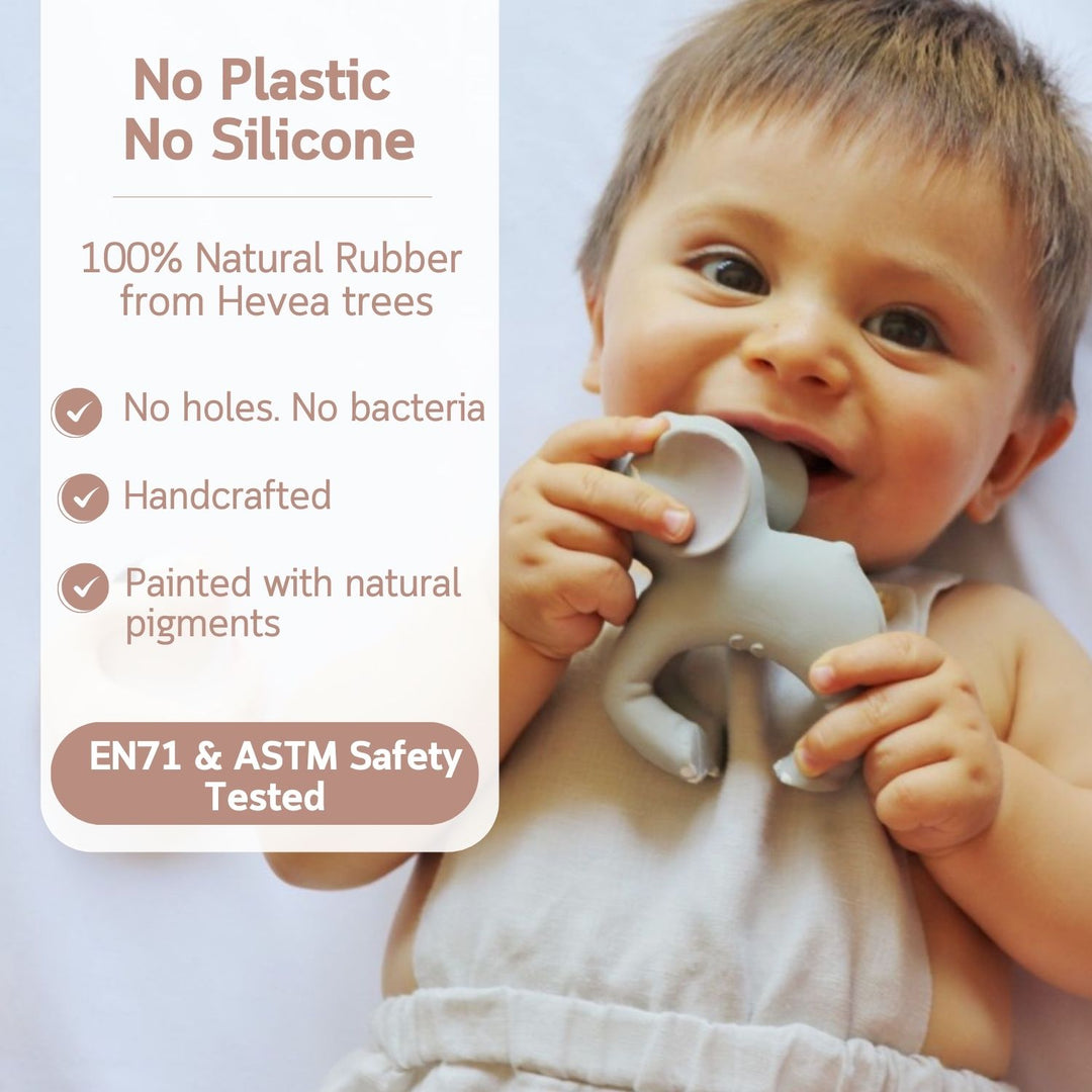 This product is perfect as a baby teether, babies and kids toy, bath toy, for sensory play and decorative object. It is made following an artisanal, sustainable and eco-friendly process with 100% natural rubber from Hevea trees. As it is made all in one piece with no holes, it avoids the creation of bacteria inside. Hand-painted with natural pigments one by one, so there are no two alike!