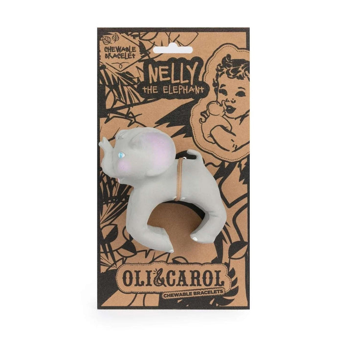 Nelly the Elephant is a chewable bracelet meant for teething, bath time and sensory play. It is inspired by the true king of the jungle. It is hand-painted with natural pigments making it 100% safe for kids to chew on while wearing it around the wrist! Kids can take Nelly on every adventure.