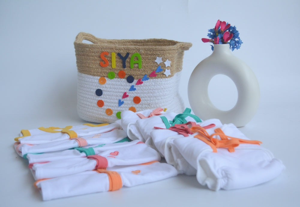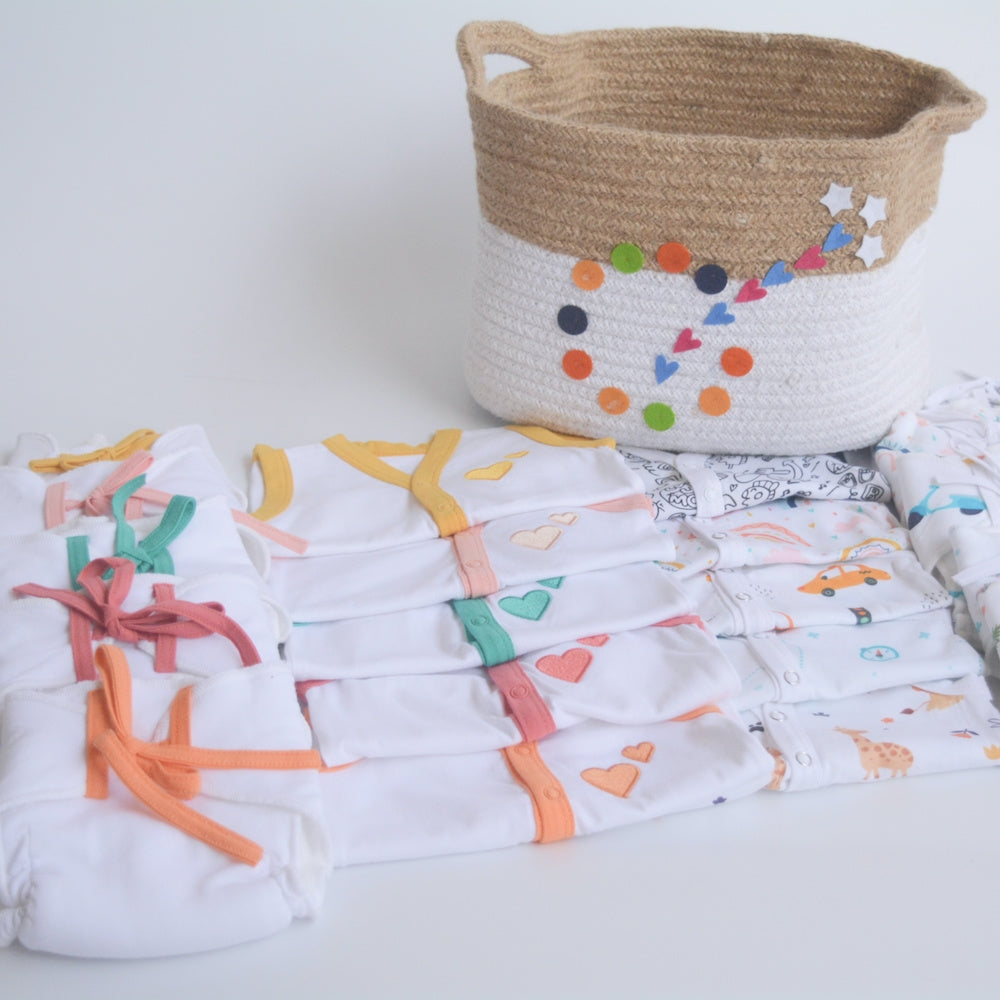 Hearts & Colours Basket- Everyday Essentials Nappy & Vest (Set of 20)