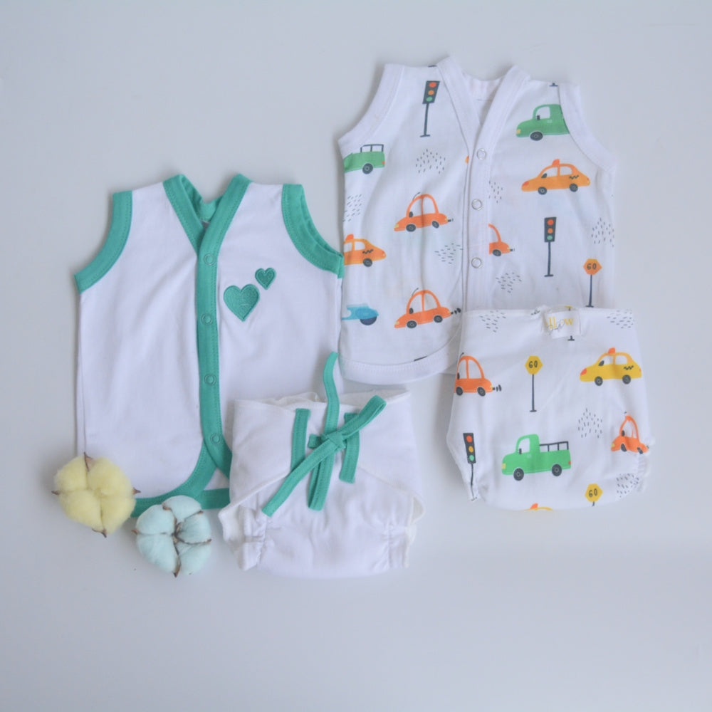 Green Hearts - Everyday Essentials Nappy & Vest (Set of 4)