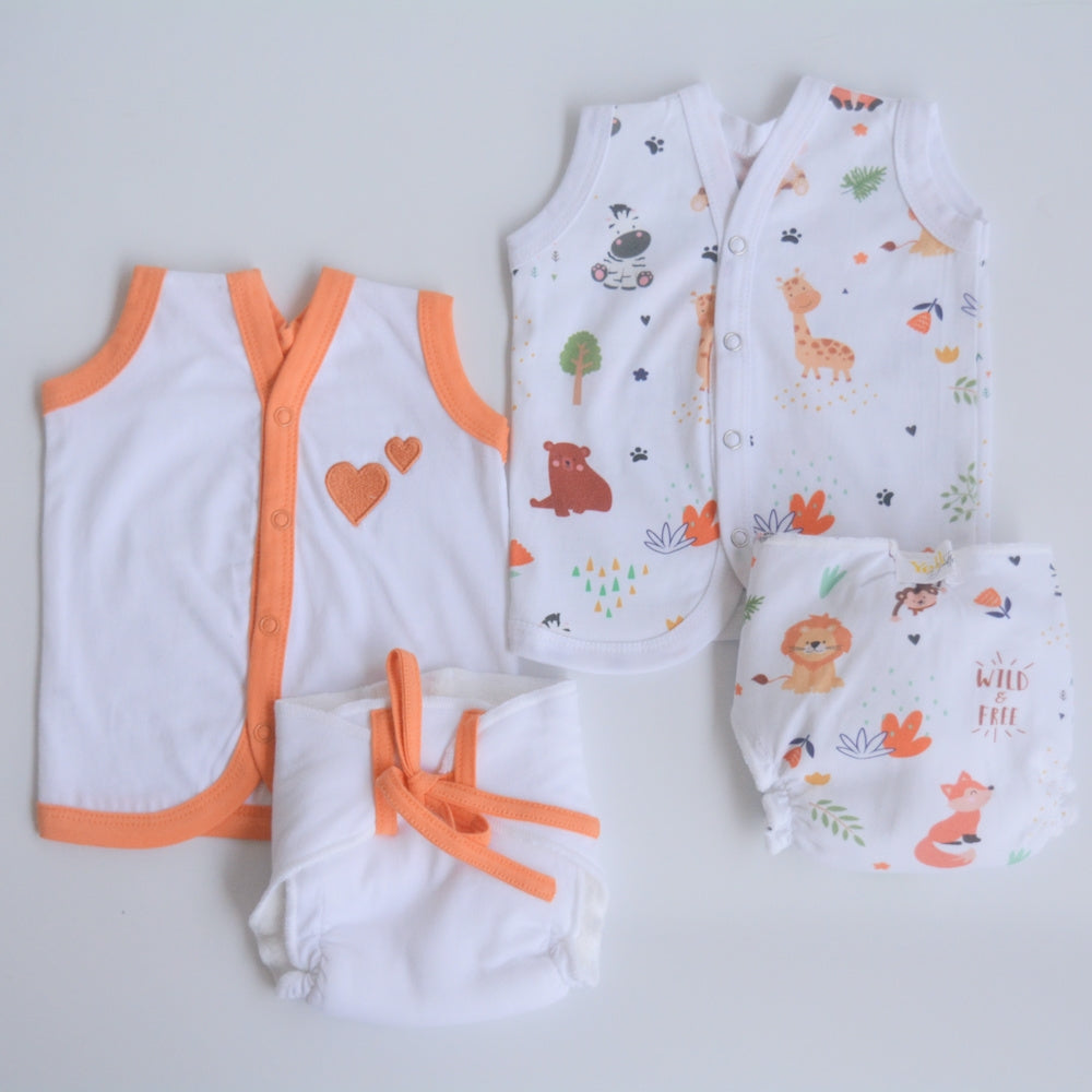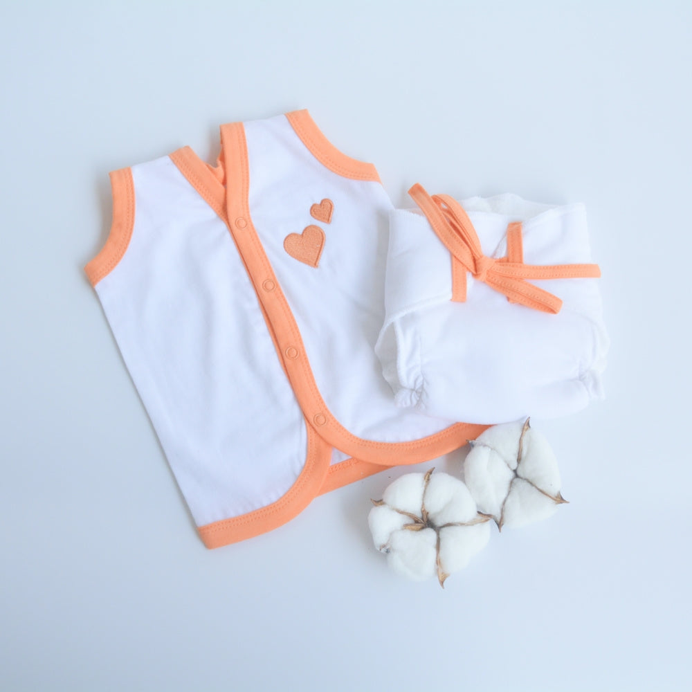 Orange Hearts - Everyday Essentials Nappy & Vest (Set of 4)