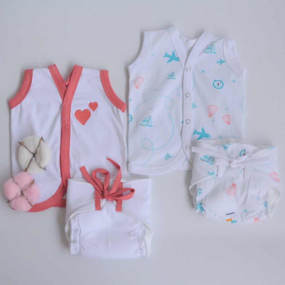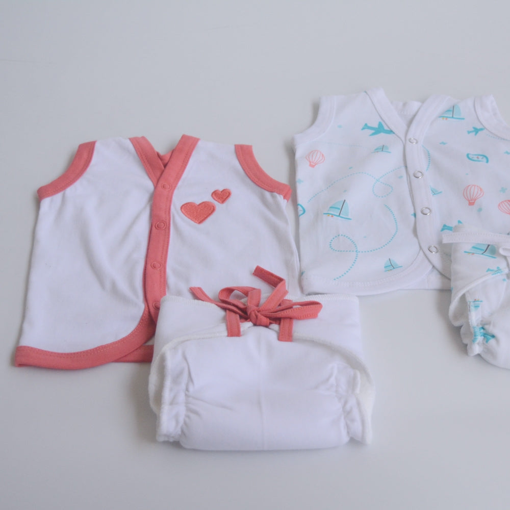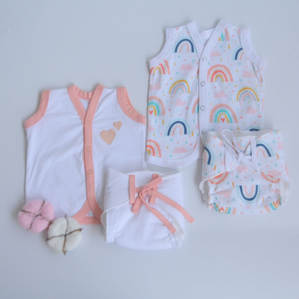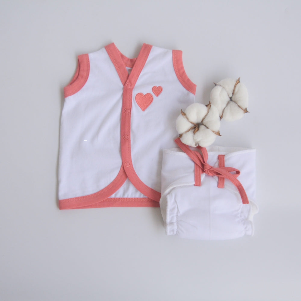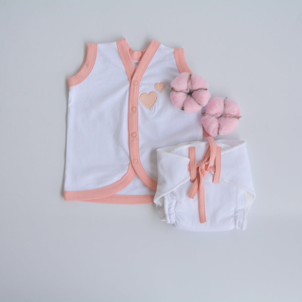 Peach Hearts - Everyday Essentials Nappy & Vest (Set of 4)