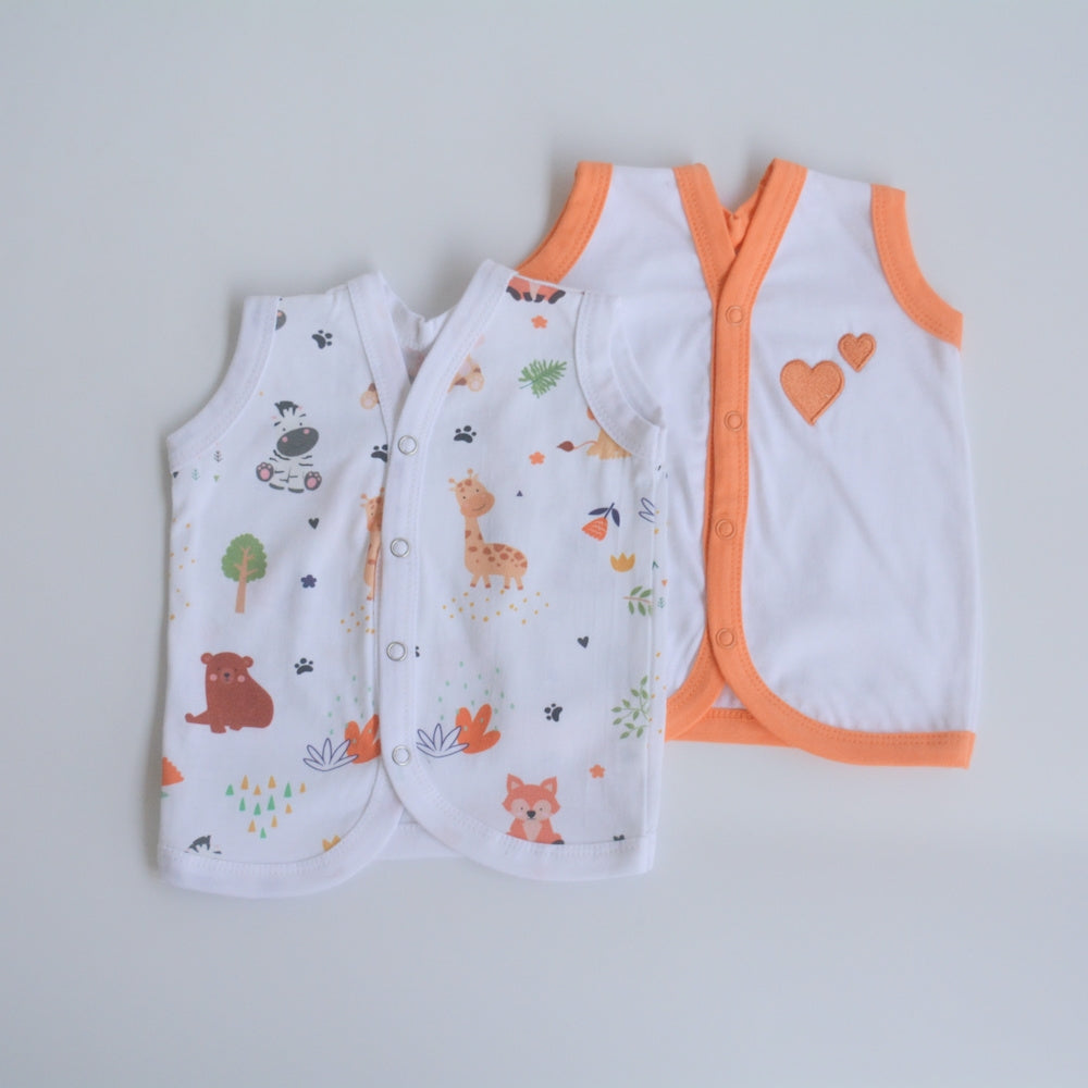 Orange Hearts - Doodle Baby Vests (Set of 2)