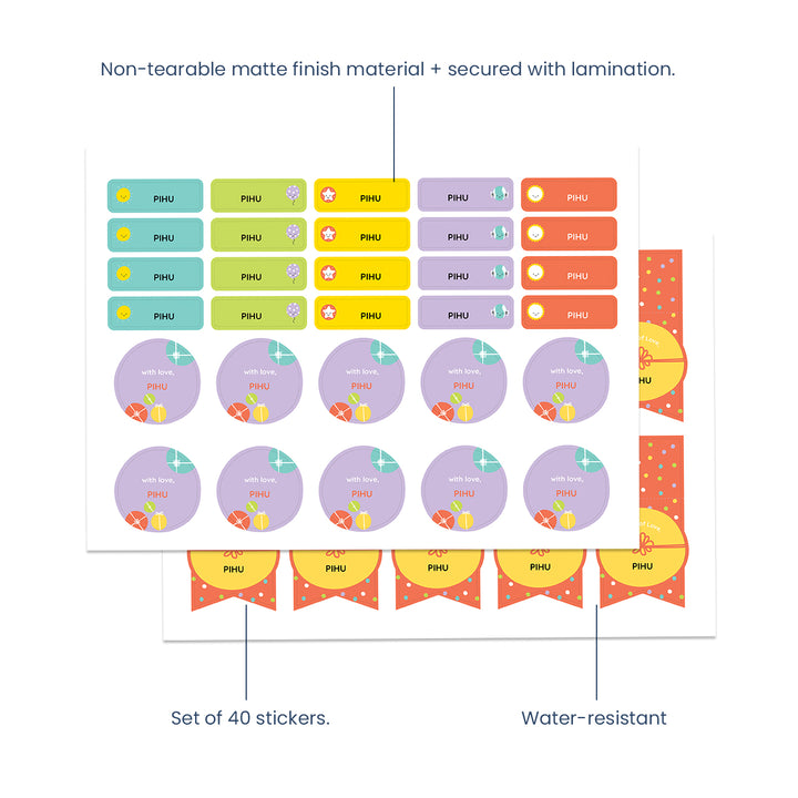 Elevate your gifting game with personalized water-resistant Name Stickers. You can easily use them to seal gift bags & boxes and also to add your kids name to their birthday return favours & more! These stickers also work great for all your easy-to-lose school supplies like pencils, rulers, small toys etc.