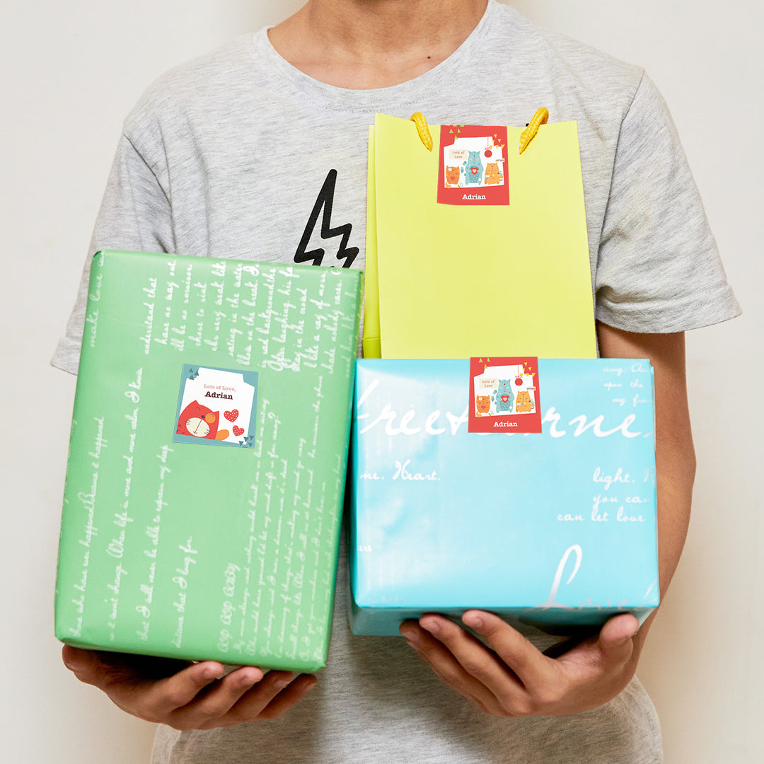 Elevate your gifting game with personalized water-resistant Name Stickers. You can easily use them to seal gift bags & boxes and also to add your kids name to their birthday return favours & more! These stickers also work great for all your easy-to-lose school supplies like pencils, rulers, small toys etc.