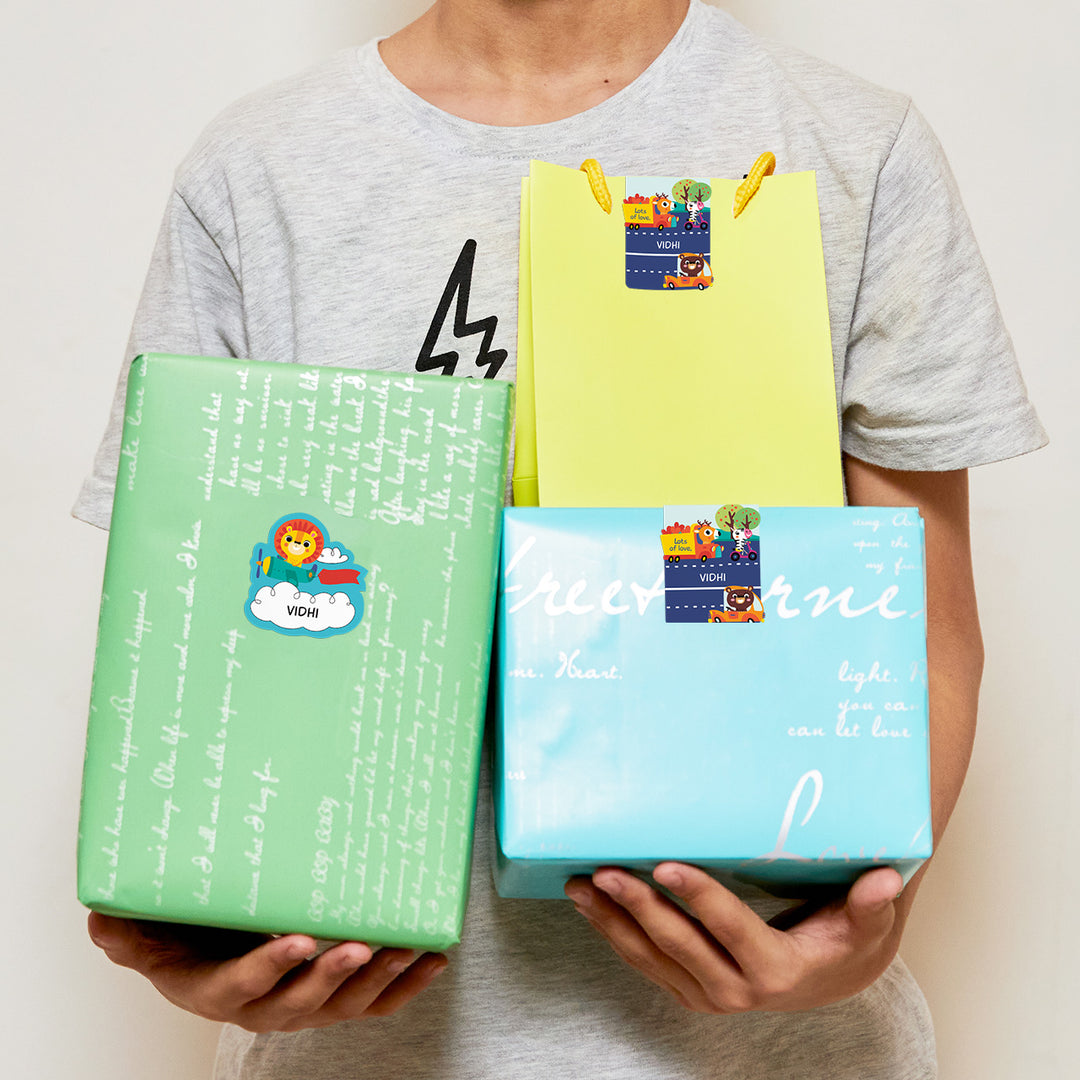 Elevate your gifting game with personalized water-resistant Name Stickers. You can easily use them to seal gift bags & boxes and also to add your kids name to their birthday return favours & more! These stickers also work great for all your easy-to-lose school supplies like pencils, rulers, small toys etc.