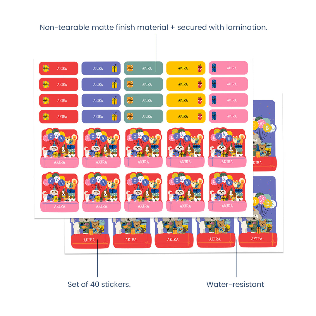 Elevate your gifting game with personalized water-resistant Name Stickers. You can easily use them to seal gift bags & boxes and also to add your kids name to their birthday return favours & more! These stickers also work great for all your easy-to-lose school supplies like pencils, rulers, small toys etc.