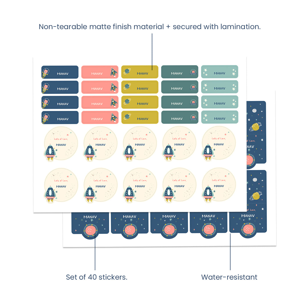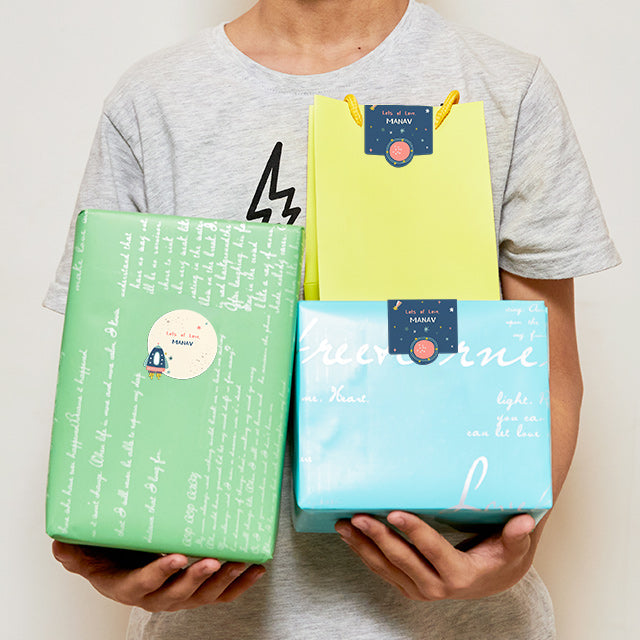 Elevate your gifting game with personalized water-resistant Name Stickers. You can easily use them to seal gift bags & boxes and also to add your kids name to their birthday return favours & more! These stickers also work great for all your easy-to-lose school supplies like pencils, rulers, small toys etc.