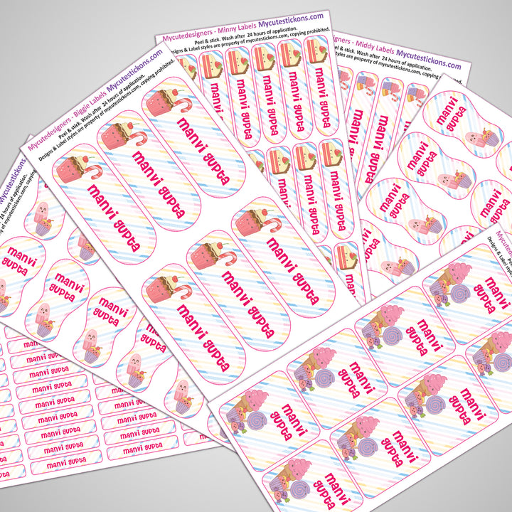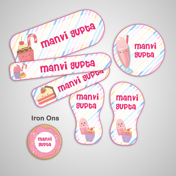 Cute Ice Cream Name Label - Complete/Split/Iron Ons Packs
