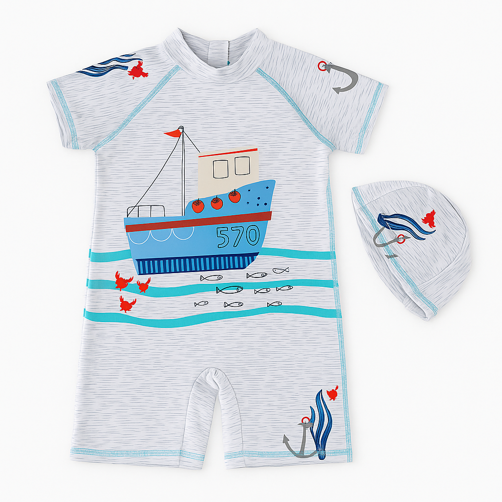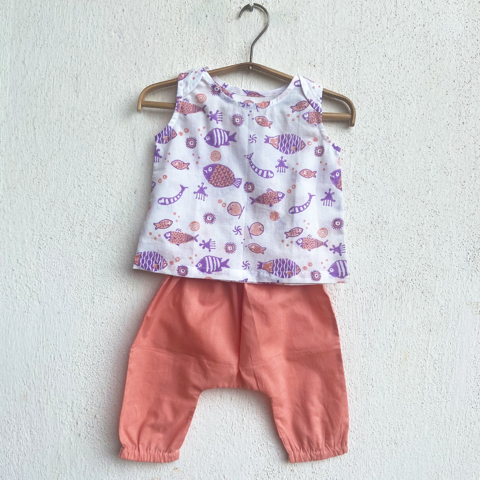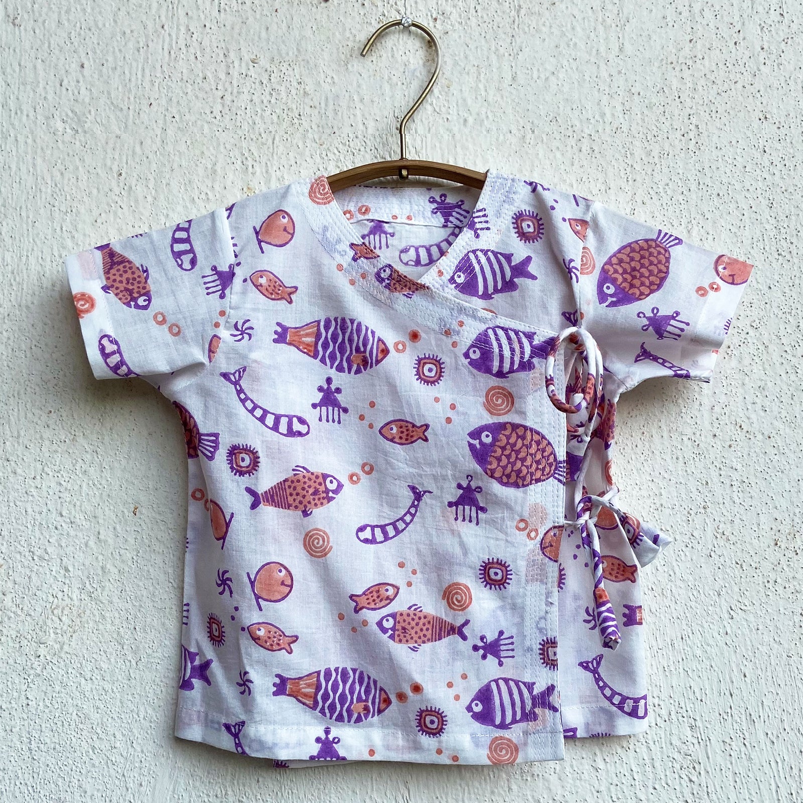 UNISEX ORGANIC FISH PRINT ANGARAKHA TOP + MINT PANTS