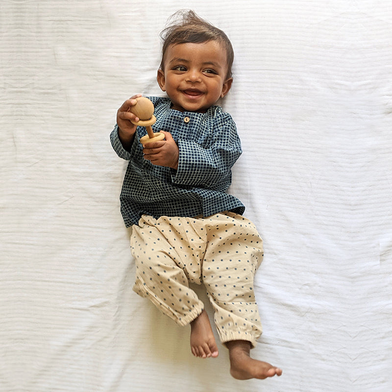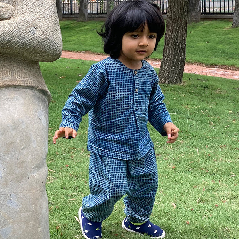 UNISEX ORGANIC INDIGO CHECK KURTA + MATCHING PANTS