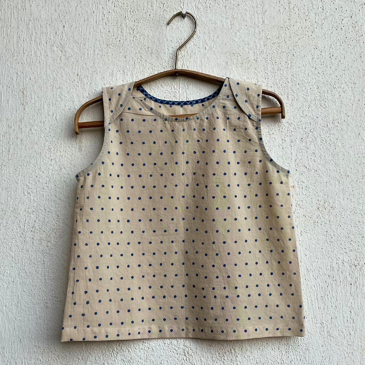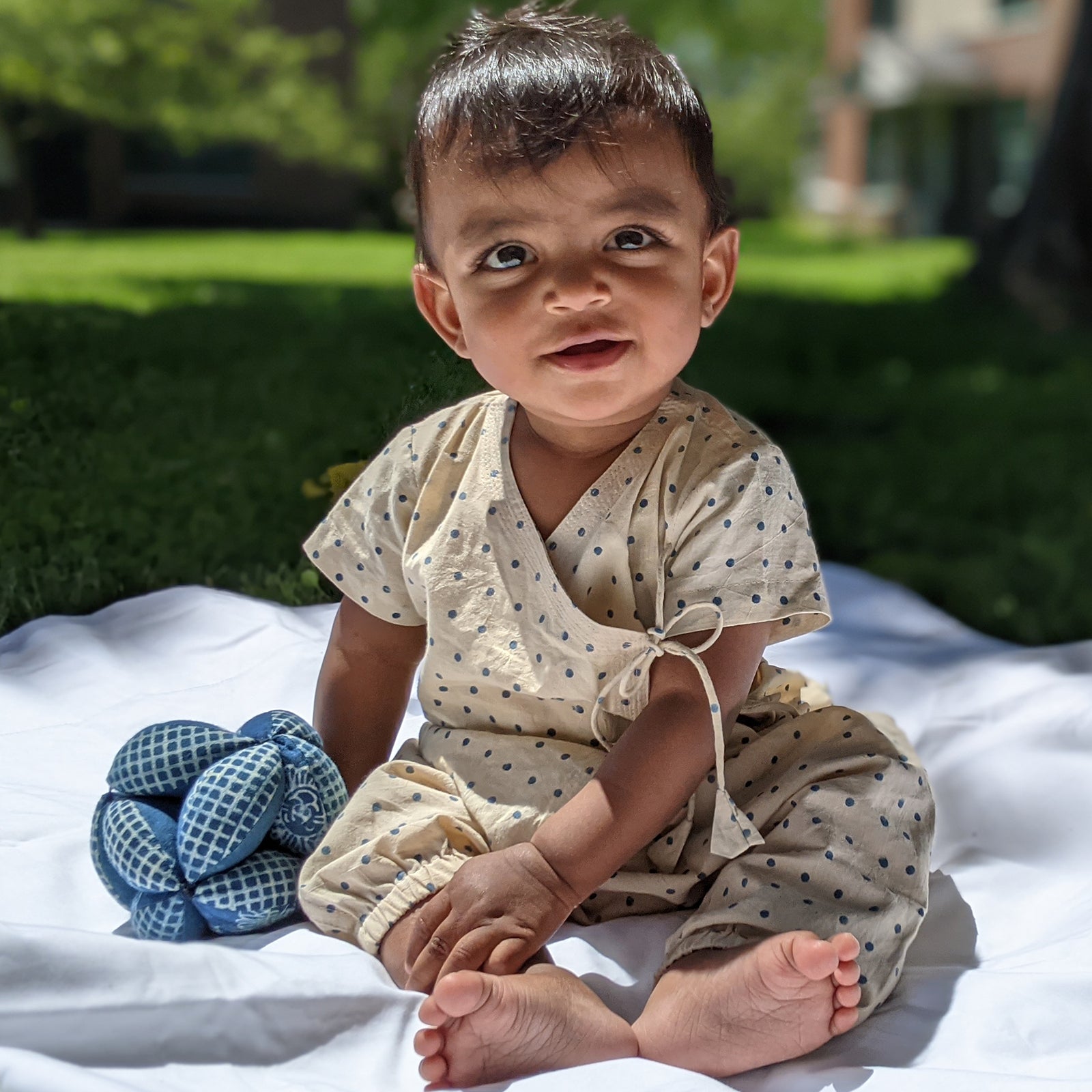 UNISEX ORGANIC INDIGO POLKA JHABLA WITH MATCHING PANTS