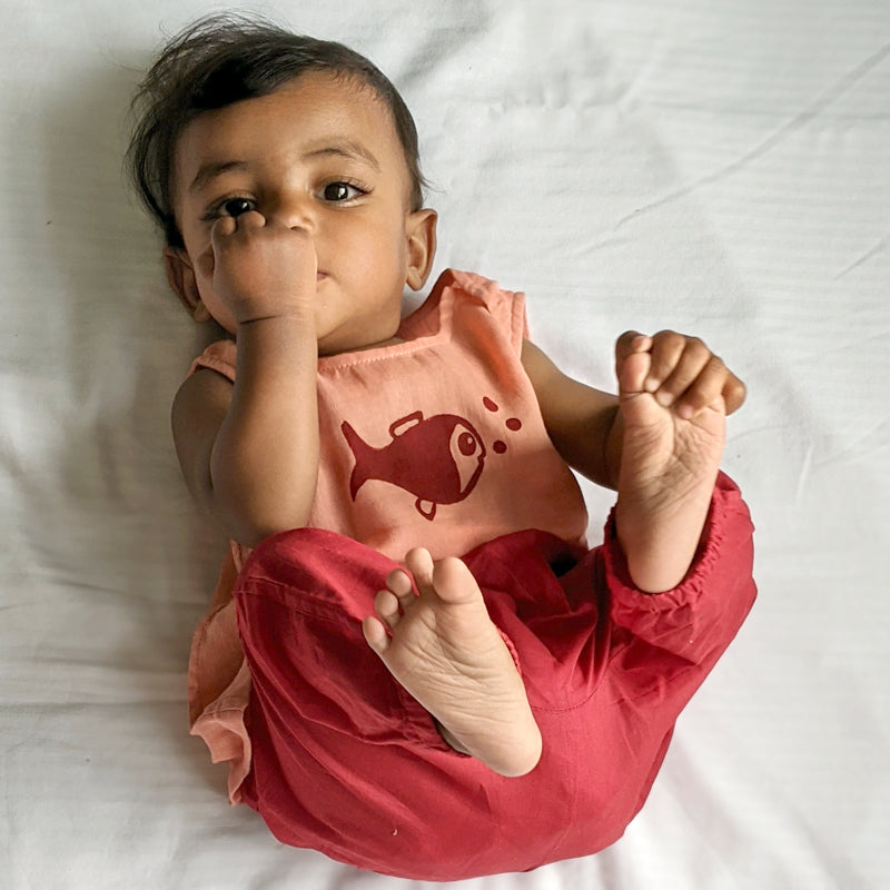 UNISEX ORGANIC KOI PEACH PRINT KURTA + PEACH PANTS
