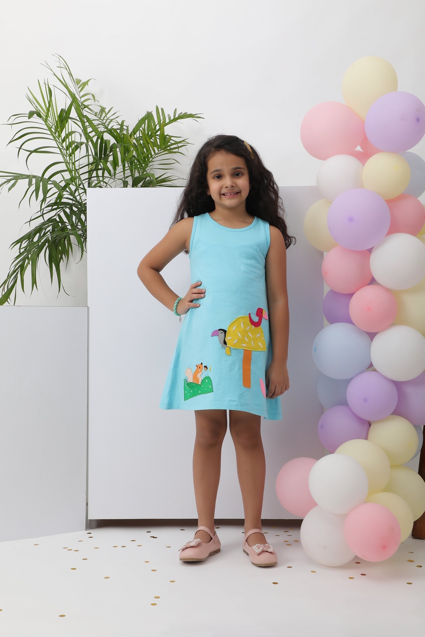 WHITEWATER KIDS UNISEX ORGANIC ZOO INDIGO RAIDANA JHABLA WITH MATCHING PANTS