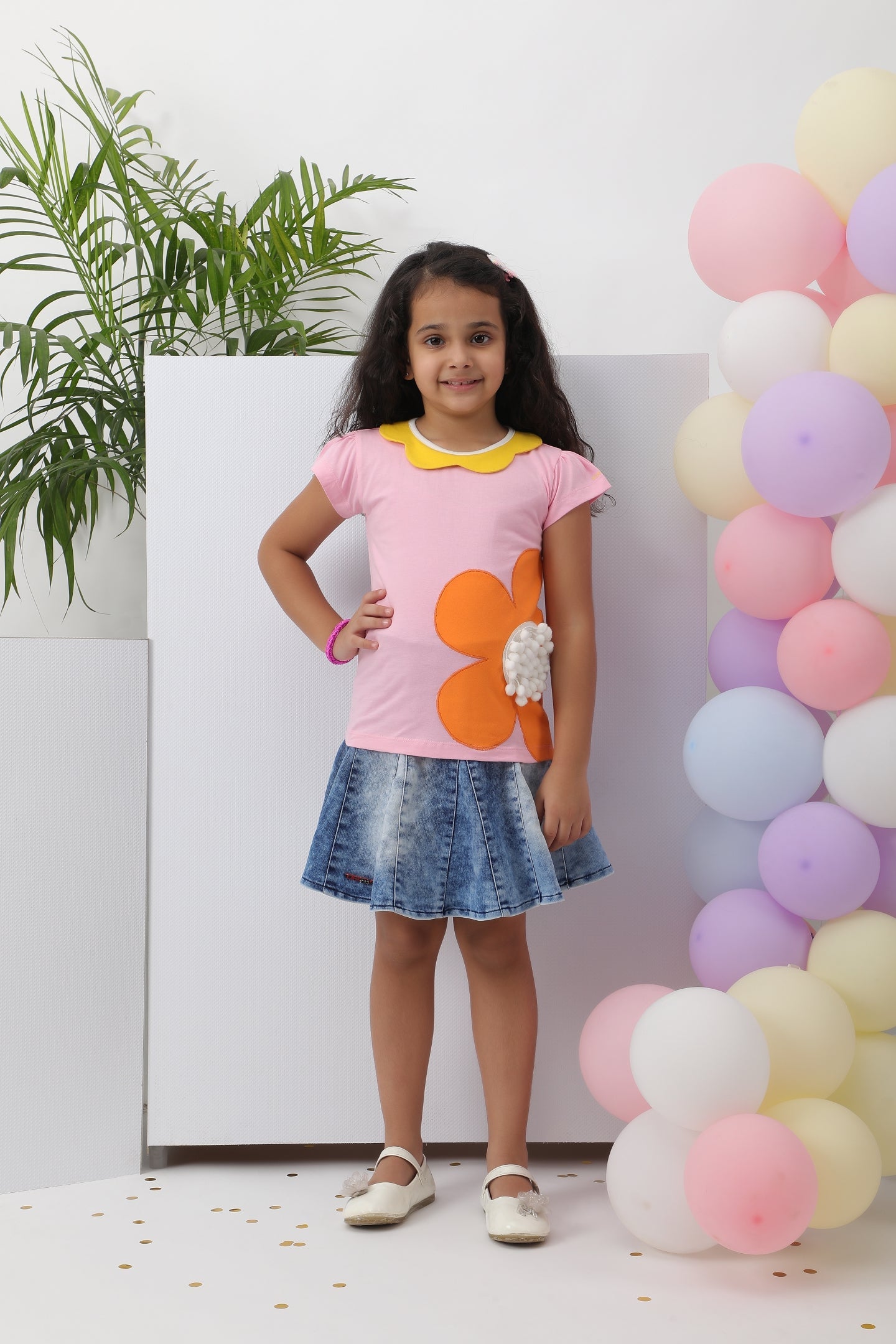UNISEX ORGANIC KOI PEACH PRINT ANGRAKHA TOP WITH PEACH PANTS