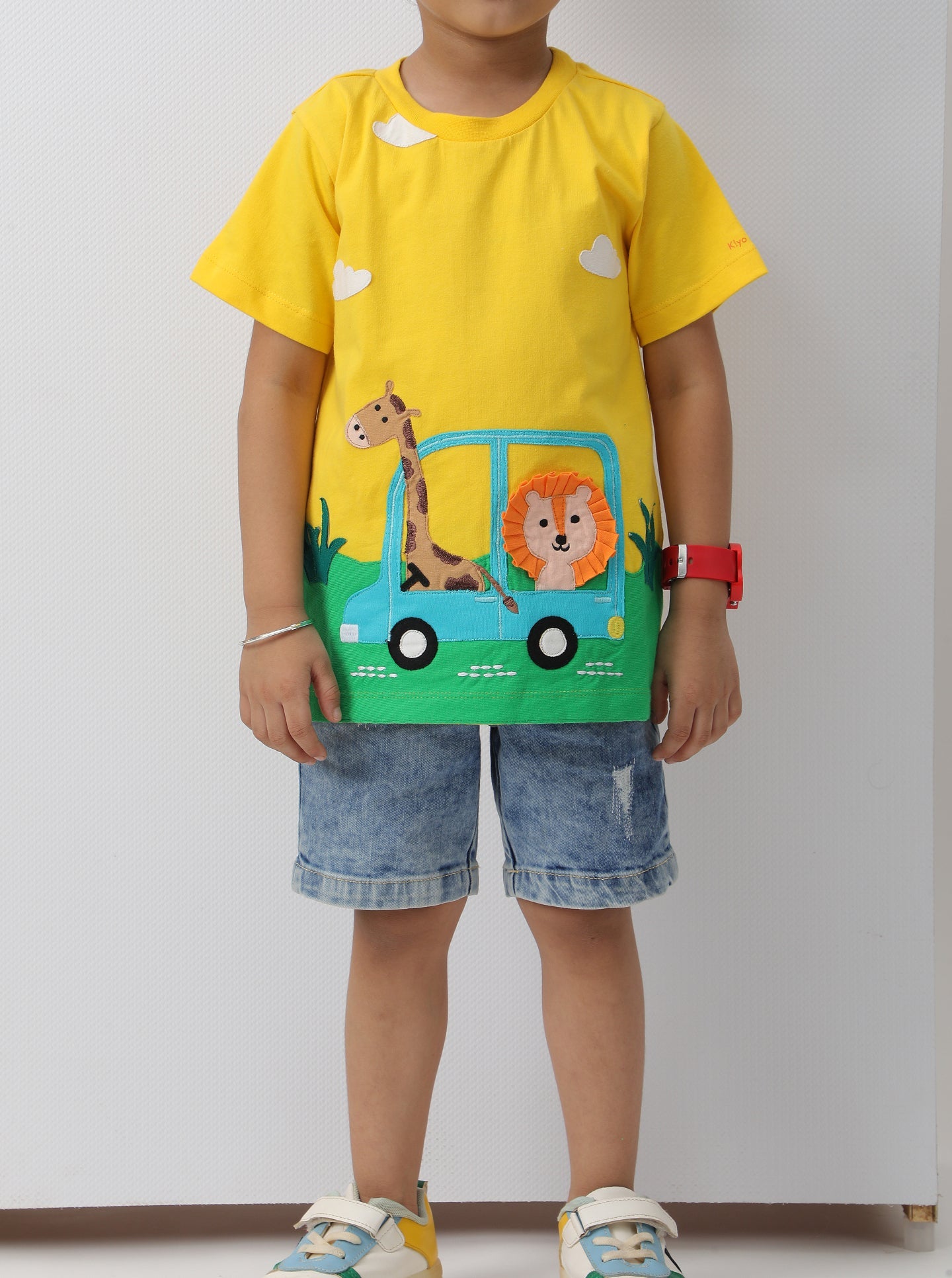 UNISEX ORGANIC ZOO YELLOW JHABLA WITH INDIGO CHECK PANTS