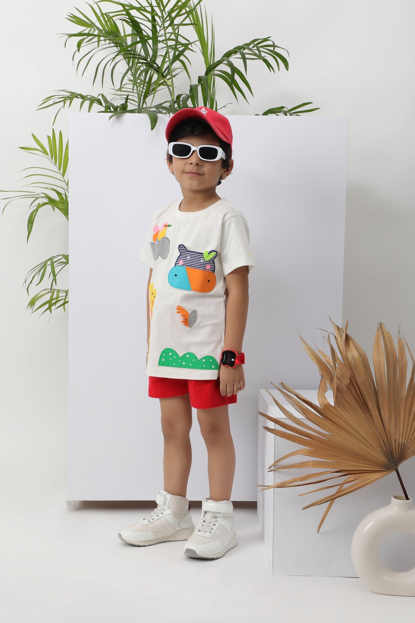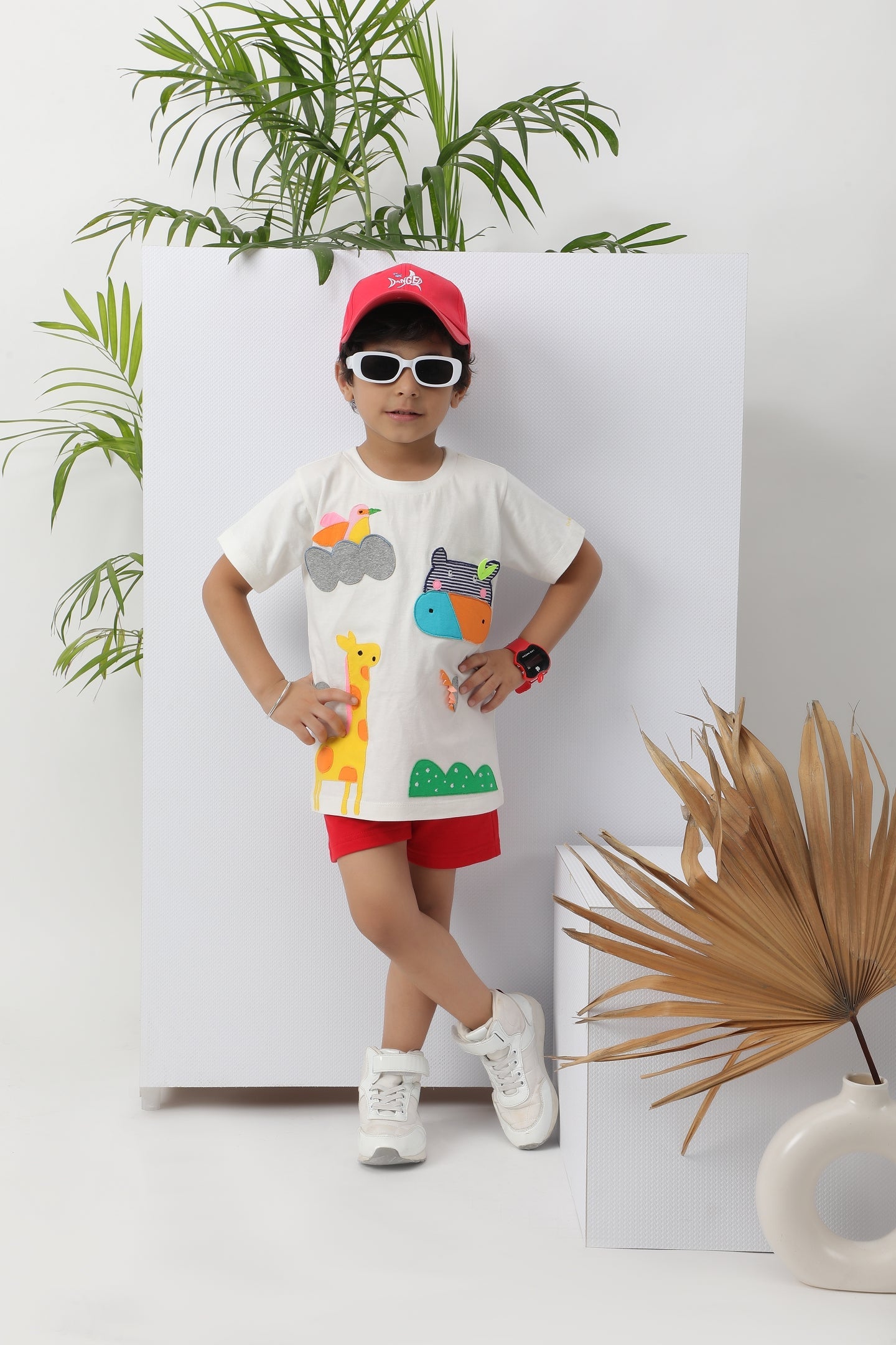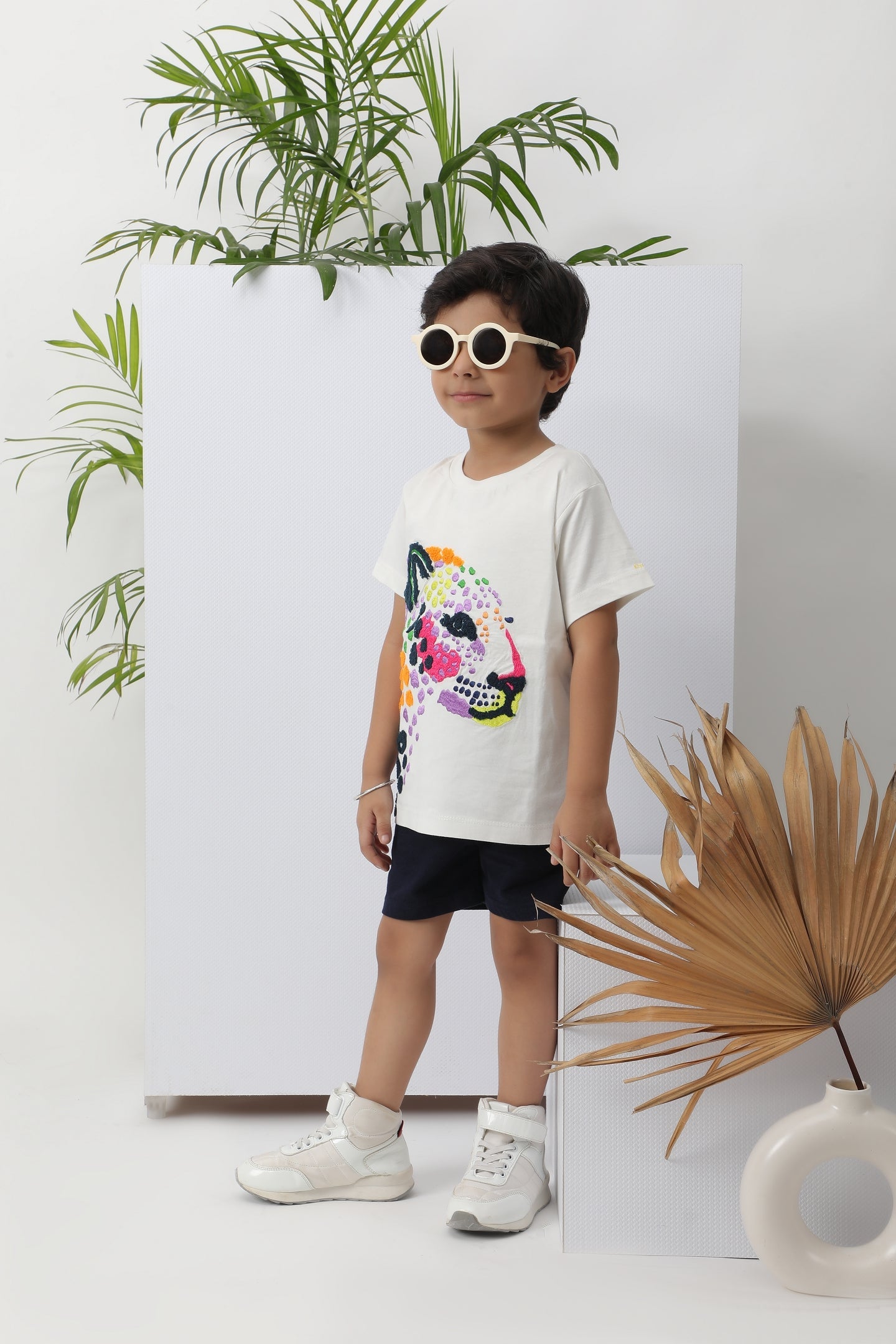 UNISEX ORGANIC WHITE KURTA + ZOO PRINT INDIGO PANTS