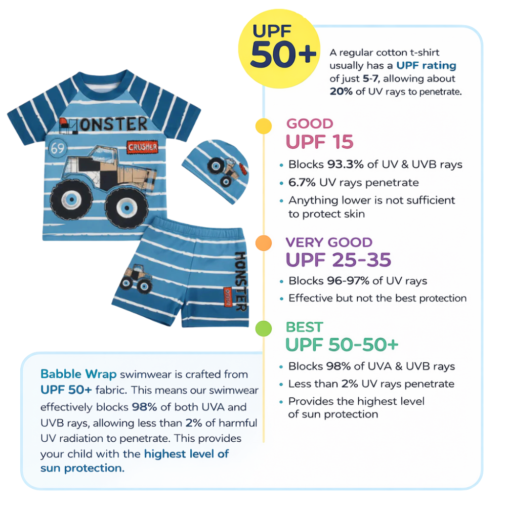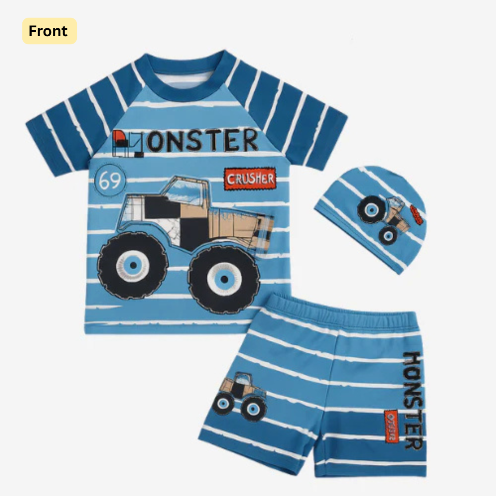 Get ready to rev up the fun with our Monster Crusher Swim Squad Set – perfect for little racers who love big wheels and bigger splashes!