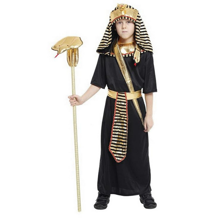 Step back into the majestic world of Ancient Egypt with the Dynasty Pharaoh King costume! Designed with regal black and gold accents, this royal ensemble transforms your child into a legendary ruler of the Nile — perfect for Halloween, school plays, or themed dress-up events.