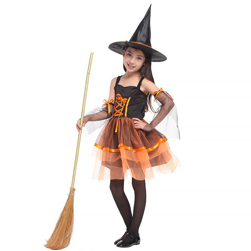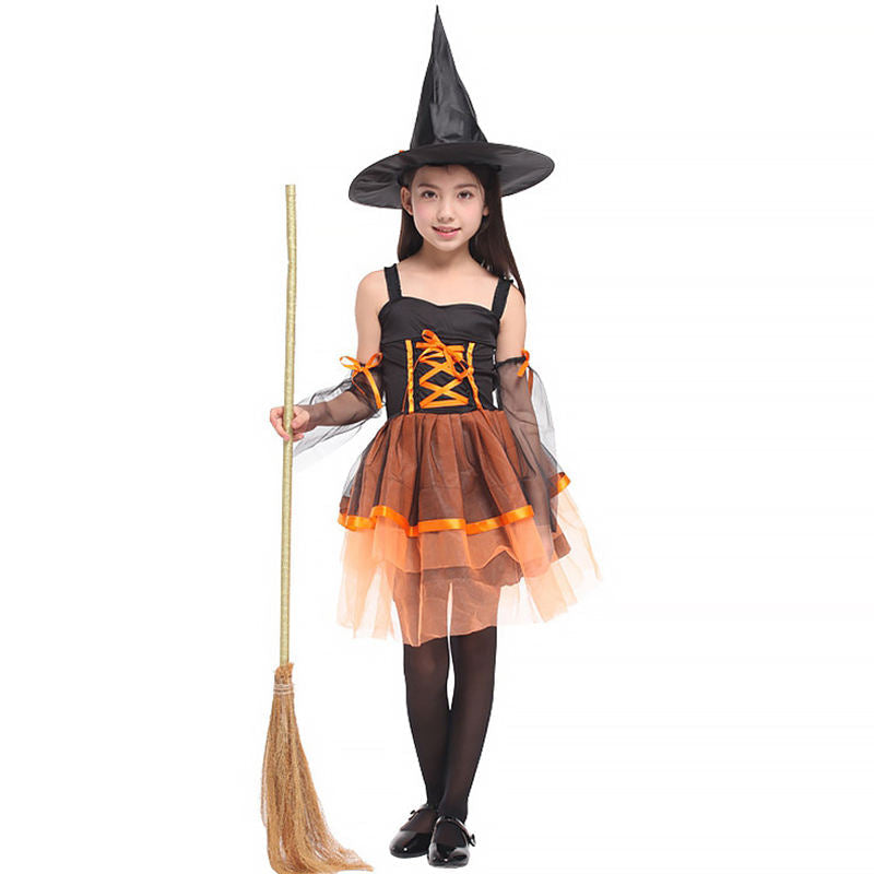 A layered orange-and-black witch dress with tulle skirt for a whimsical flair