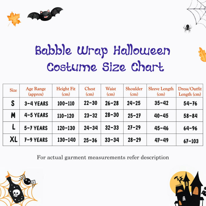 XL (7–9 yrs): Length 68 cm | Chest 25 cm | Waist 34 cm (stretchable)