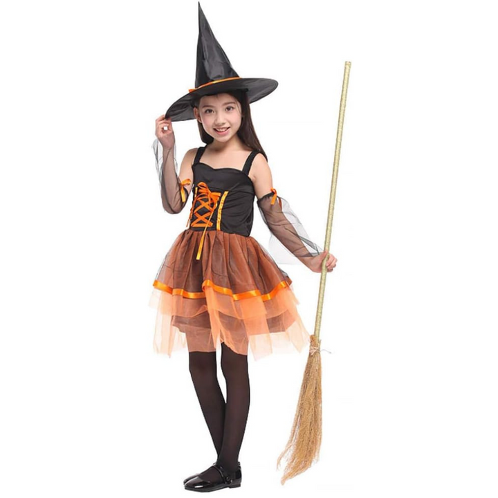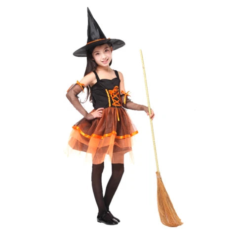 Let your little one cast spells in style with the Twilight Witch costume! With its layered orange-and-black design, whimsical tulle skirt, and classic witch hat, this outfit is perfect for Halloween trick-or-treating, costume parties, or magical playtime.