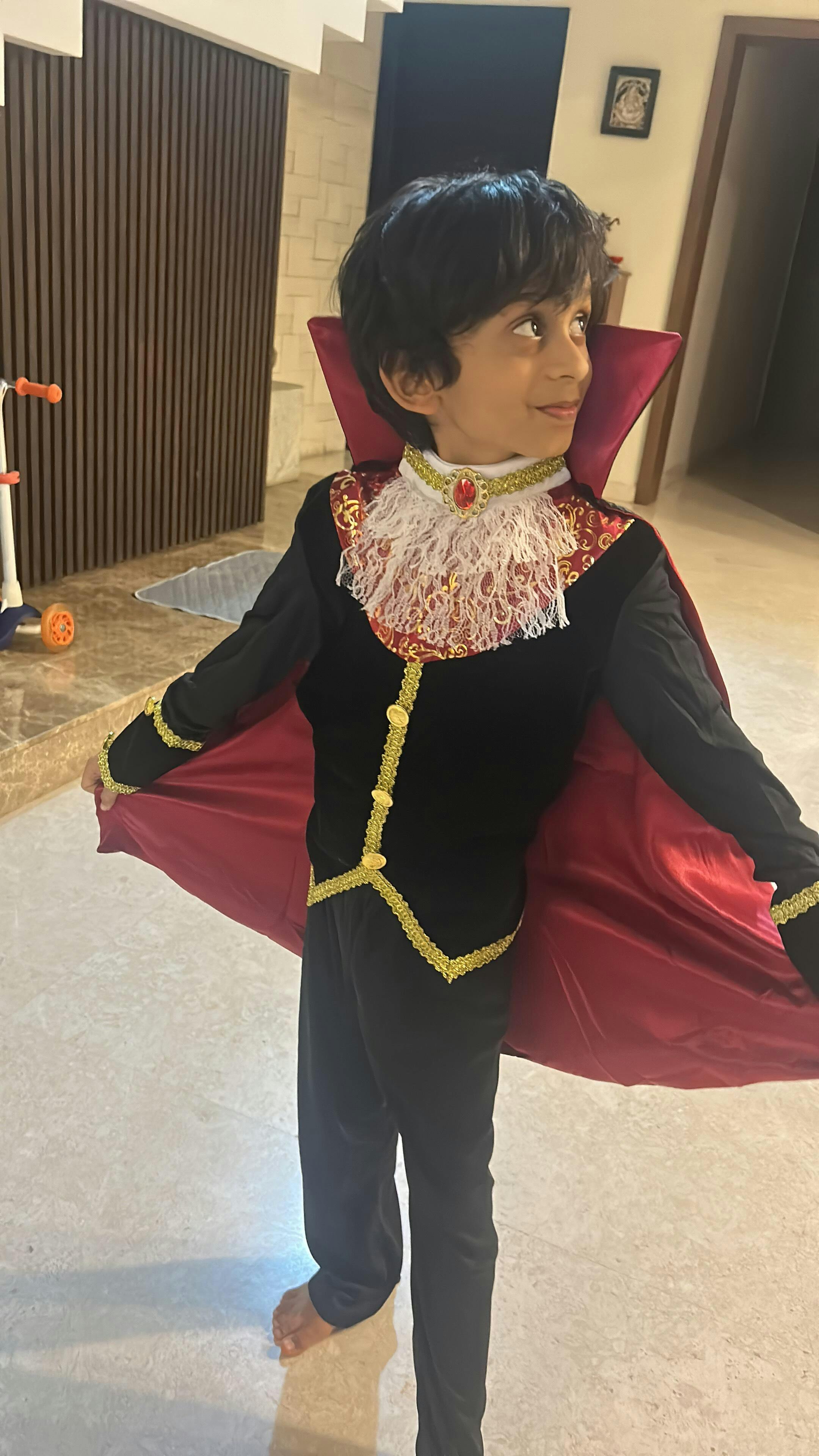 Let your little one rise under the moonlight with the Moonlit Vampire costume — dark, dashing, and hauntingly elegant!